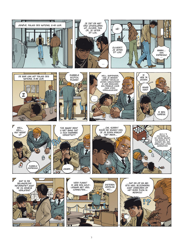 Hé! Olivier Varèse! Je veters zitten los! Olivier Varèse is verslaggever zonder grenzen. Hij woont en werkt in Genève. In zijn eerste avontuur De duif op het Rode Plein stuit hij, nog slaapdronken achter zijn eerste dubbele espresso, op een geweldige scoop – die zal plaatshebben op 28 mei. Een joviale Amerikaan tipt hem. Voor dat nieuws moet hij wel naar het Rode Plein in Moskou, en zijn chef ziet dat uitstapje helemaal niet zitten. Maar Varèse is al onderweg naar de Russische hoofdstad waar de Koude Oorlog zijn laatste dagen beleeft. En, zoals dat gaat in spionageverhalen, niets is wat het lijkt. De joviale Amerikaan is plotseling ook in Moskou, maar wat doet hij daar eigenlijk? Voor wie werkt hij? Het antwoord op die en veel meer vragen lees je in de ontknoping van De duif op het Rode Plein.