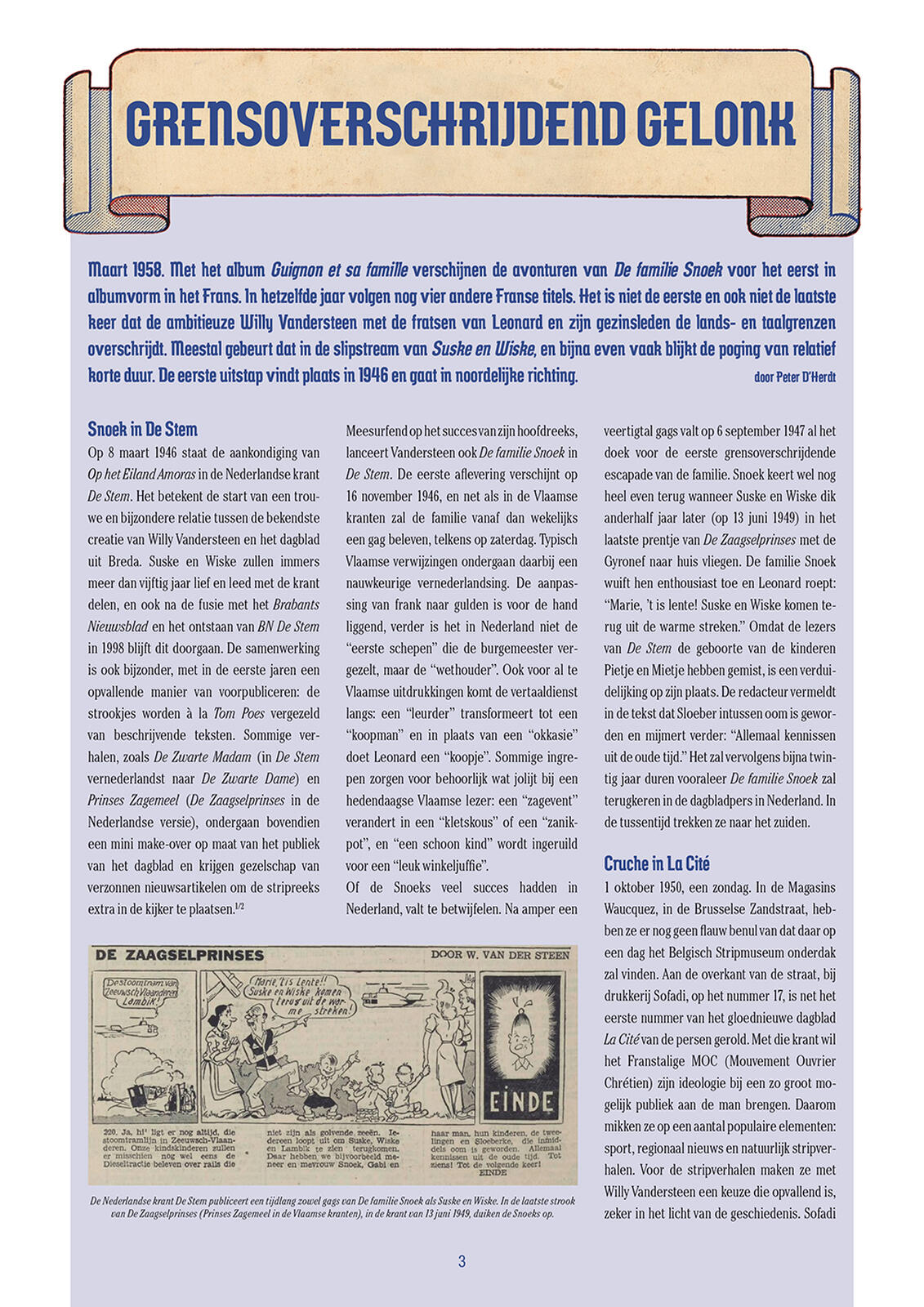 In 1945 startte Willy Vandersteen voor De Nieuwe Standaard de gagreeks De familie Snoek op. Centraal staat het gezin van vader Leonard Snoek dat keer op keer in nogal bijzondere situaties terechtkomt. De reeks verscheen in de krant van 1945 tot en met 1954. Een tweede reeks gags was van 1965 tot en met 1969 te volgen in Pats, de kinderbijlage van De Standaard. Een derde reeks liep tot slot van 1969 tot en met 1972 in het weekblad TV Ekspres. Standaard Uitgeverij bundelt voor het eerst alle 759 verschenen gags in vier integrales. Elk deel wordt voorafgegaan door een uitgebreid dossier, samengesteld door David Steenhuyse en Peter D’Herdt. Dirk Stallaert zorgt voor de coverillustratie.