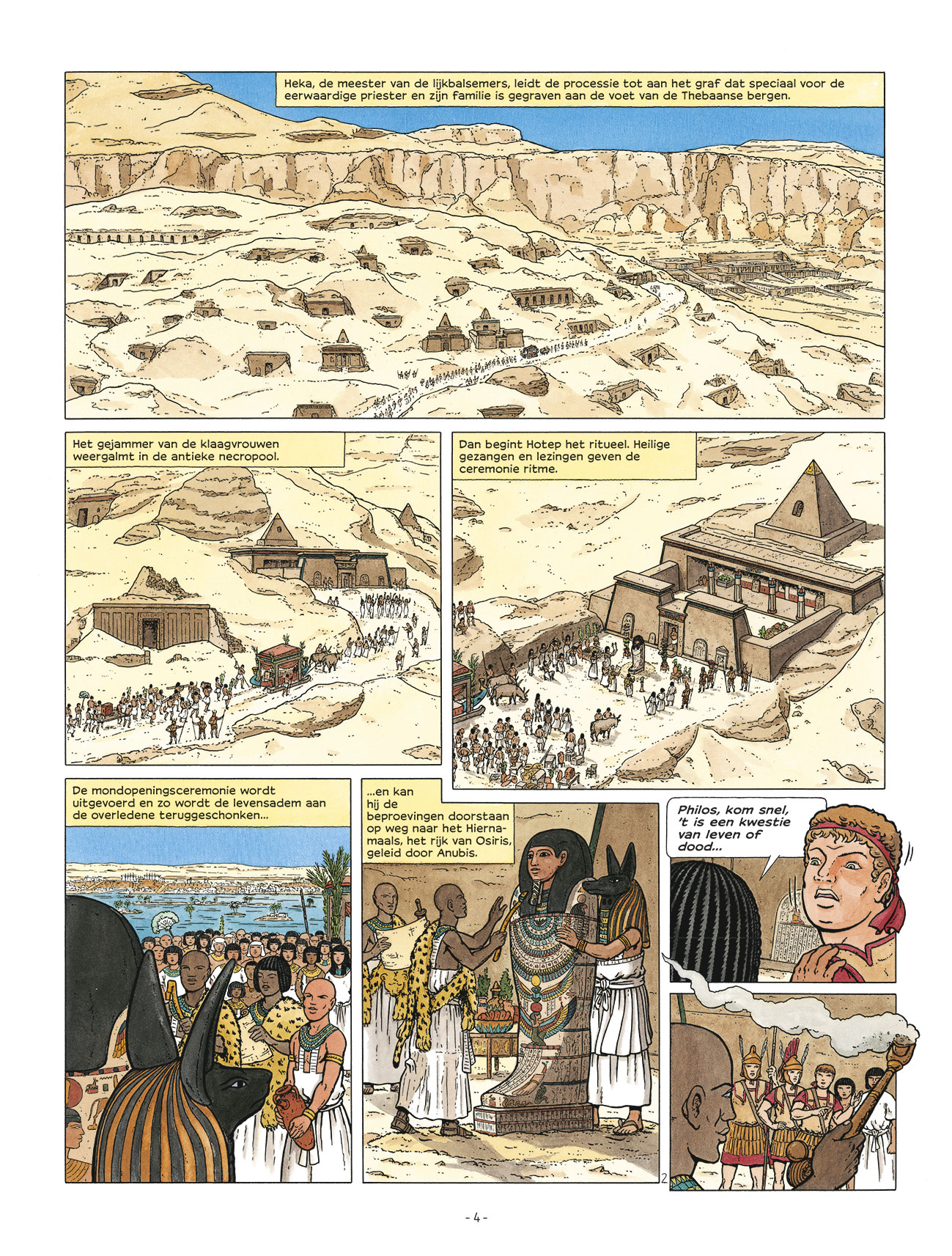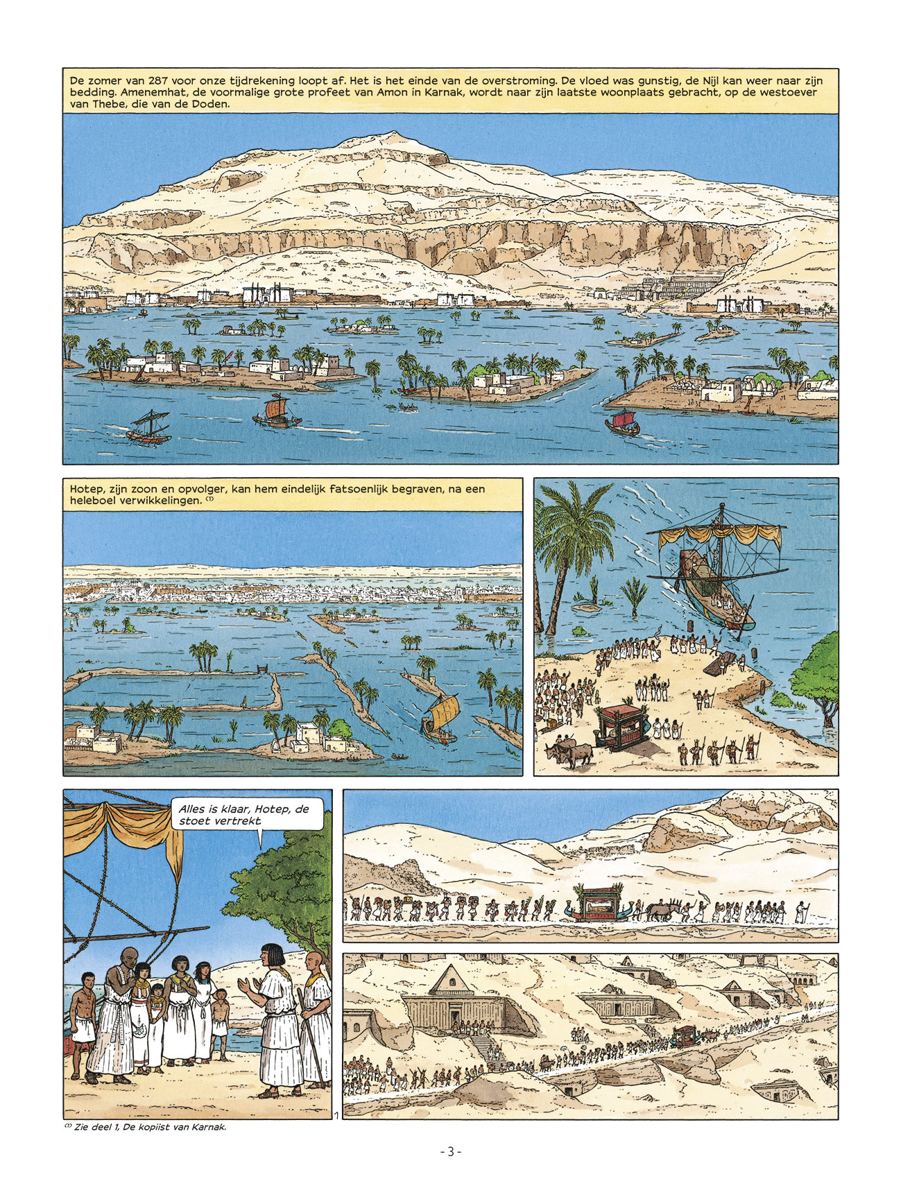 Rafaël Morales verdiende zijn sporen bij Jacques Martin als tekenaar van Alex en De Reizen van Alex . In 2007 startte hij zijn eigen historische reeks Hotep bij Glénat waarvan in 2009 het vervolg verscheen. Deze in het oude Egypte gesitueerde reeks kwam niet uit in vertaling. De reeks werd helaas stopgezet na twee delen, maar Glénat gunde Morales nog de voltooiing van het verhaal door in 2021 een integrale uit te brengen met de beide albums van Hotep en het slotdeel erbij. Het werd uitgegeven onder een nieuwe titel die Daedalus nu gebruikt voor de vertaling: De Farao's van Alexandrië. Daedalus geeft het eveneens uit als een integrale in hardcover in bepekte oplage, maar ook als drie delen in softcover waarvan deel 1 tegelijk met de integrale uitkomt. Het softcoveralbum van deel 2 staat in maart 2023 gepland en deel 3 in juni 2023. Voor dat laatste album zal Morales nog een cover moeten tekenen, want die bestaat momenteel niet. Tweede deel in dit drieluik over de avonturen van Hotep in het oude Egypte Schitterend hoe Rafael Morales met zijn klassieke, elegante stijl het eeuwige Egypte tot leven brengt De glorie van de Egyptische farao hangt samen met die van Alexander de Gro te, dus wanneer diens lichaam verdwijnt, laten de gevolgen zich raden... 287 v.C. In Thebe loopt de zomer op zijn einde, de overstroming van de Nijl is bijna voorbij en Hotep begeleidt zijn vader naar diens laatste rustplaats. Na heel wat tegenslagen kan de grote profeet van Amon zich eindelijk wijden aan zijn taak: de cultus van de god verzorgen en Karnak herstellen, dat erg te lijden heeft gehad door het weer en vijandige invallen. Maar een moord stuurt alles in de war. In Memphis en in Alexandrië, de nieuw e hoofdstad, wordt een complot beraamd. Het sleurt Hotep en Egypte, geleid door de erfgenamen van Alexander de Grote, mee naar nieuwe gevaren..
