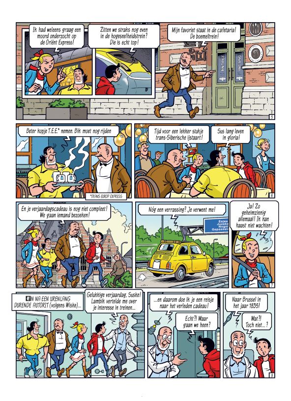 Barabas wil onze vrienden trakteren op een ticket voor de eerste treinrit in België. Zijn over-over-overgrootmoeder Miranda bleek één van de machinisten te zijn. Maar als Lambik in het verleden een man tegenhoudt die hem brutaal uit de weg duwt, verdwijnt Barabas plots in het niets. De man in kwestie blijkt een privédetective en zat een saboteur achterna die een aanslag op de trein wil plegen. Onze vrienden vrezen dat ze de geschiedenis hebben veranderd en dat Miranda de aanslag niet zal overleven, waardoor Barabas nooit geboren zal worden. Het is dan ook de taak van Suske en Wiske om de aanslag op de eerste trein te verhinderen. Maar dat loopt niet van een leien dakje omdat de saboteur ongrijpbaar blijkt