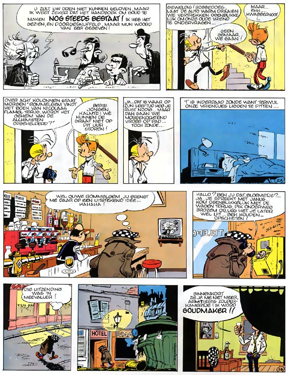 De Graaf van Rommelgem en Zwendel maken openlijk bekend dat ze het middel gevonden hebben om goud te maken. Dat is aan geen dovemans oor gezegd ... Robbedoes ziet er misschien nog steeds uit als de keurige piccolo in rood uniform die hij ooit was, maar zijn leven is nu wel heel wat avontuurlijker dan dat van een hotelhulpje. Samen met zijn onafscheidelijke vriend Kwabbernoot en Spip, de grappige eekhoorn, vecht Robbedoes overal ter wereld tegen misdadigers. En zijn tegenstanders zijn niet min: zo moet hij het opnemen tegen de verschrikkelijke geleerde Zorglub of de boosaardige piraat John Helena, tegen de Italiaanse maffia en Chinese gangsterbendes in New York of gaat hij in Palombië het geheim van een raadselachtig dier ontsluieren: de Marsupilami.