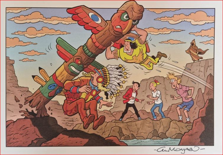 150 ex luxe met linnen band + ex-libris Jerom krijgt de hoofdrol in een Hollywoodfilm over native Americans. Een superheldenproductie waarin hij De gulden krijger speelt, een supersterke indiaan. Maar de opnamen worden gesaboteerd en het is duidelijk dat men Jerom naar het leven staat. Suske en Wiske gaan op zoek naar de daders en ontdekken zo het bestaan van een oude legende over een eeuwenoude goudschat. De zoektocht wordt aangevat maar al snel beseffen ze niet alleen te zijn.