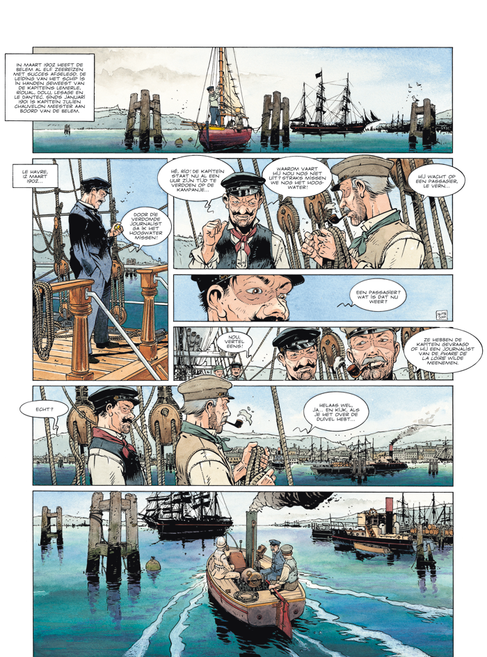 Mei 1902. De berg Pelée ontploft. Saint-Pierre en zijn veertigduizend inwoners worden vand e kaart geveegd. Van de vele zeilschepen ontsnappen alleen een Italiaanse driemaster en de Belem aan de ramp. Maart 1902 : Julien Chavelon, kapitein van de belem reageert verheuft op zijn aankomst aan de kust van martinique, het gastvrije eiland in de Caraïben. Als hij de haven van Saint-Pierre binnenloopt, ziet hij dat zijn gebruikelijke plek al bezet is door een ander schip. hij wordt gedwongen om uit te wijken naar een andere haven van Robert, aan de oostkant van het eiland.