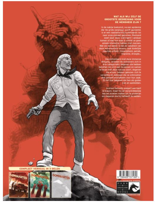 WAT ALS WIJ ZELF DE GROOTSTE BEDREIGING VOOR DE MENSHEID ZIJN ? In de nabije toekomst, na een epidemie die ‘de grote oerplaag’ wordt genoemd, is er een raadselachtig buitenaards ras naar onze planeet gekomen. Niemand weet waar deze ‘indringers’ vandaan komen of wat hun doel is omdat ze geen enkele interactie hebben met mensen. Wat we wel weten is dat de nabijheid van deze buitenaardse wezens vaak dodelijke reacties uitlokt: misselijkheid, paniek, migraine, droogte... Geconfronteerd met deze immense dreiging, verdelen de overlevers zich in drie categorieën: degenen die hebben besloten om zich aan te passen en samen te leven met deze nieuwe soort, degenen die ervoor hebben gekozen zich te verzetten en iedereen die ze ontmoeten met geweld inschakelen voor hun zaak. En tot slot degenen die hen als goden zien en aanbidden. Andrew Kennedy weigert een kant te kiezen, maar hij zal verschrikkelijke keuzes moeten maken om te proberen om degenen die hij liefheeft te redden. De auteurs kennen we ook van deze reeksen Scenarist Runberg: op mars orbital optic Squad Jacob Kayne De Splitsing Het Schaduwspel der Sinobis Tekenaar Toledano: Ken Games Tebori
