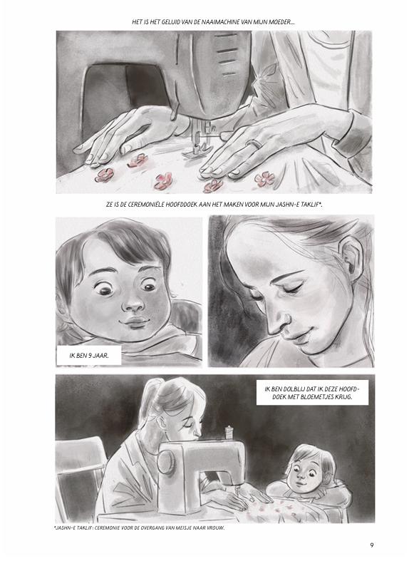 Volgens de islamitische wet is de vader eigenaar van het bloed van zijn kinderen. Dat betekent dat hij zijn kroost nagenoeg ongestraft mag vermoorden. In de Iraanse samenleving heeft de man dus alle macht, ook over vrouwen. In dit album vertelt Mansoureh Kamari het verhaal van haar leven als kind en als tiener onder dat mannelijke juk. Ze beschrijft ontstellende feiten: de vele verboden (om te lachen, te zingen, te dansen), het risico om als 9-jarige te worden uitgehuwelijkt en op je vijftiende te worden geëxecuteerd, nadat je eerst nog wordt verkracht. Ze vertelt over aanrandingen, op straat, in de taxi, bij de dokter… en de voortdurende angst, de onmacht, de onmogelijkheid om je leven zelf in handen te nemen. Maar Mansoureh vlucht uit Iran en ontkomt zo aan de voortdurende onderdrukking. Dit album is ook het verhaal van een metamorfose, van een vrouw die haar vrijheid hervindt.