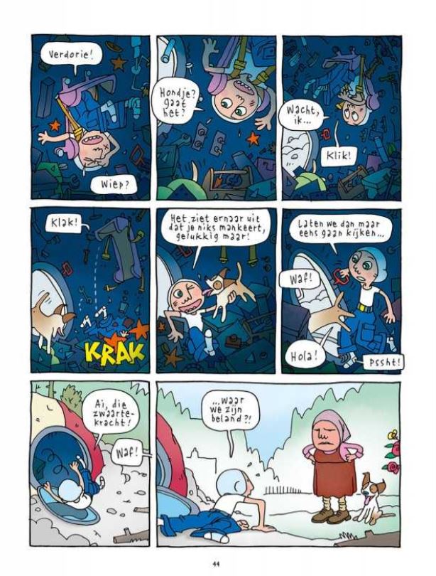 Het gat in de cover, met een blik op de aarde, maakt ons heel nieuwsgierig en gelukkig ligt de sleutel onder de mat na een ruimtewandeling. Maar dan moet het ruimtehondje Laika nog komen. Wat een leuke vondst. Vriends werkt met eenvoudige vormen en heldere lijnen. De juiste gevoelens komen zo veel sterker binnen. We waren al verliefd op dit verhaal vanaf we de cover te zien kregen!
