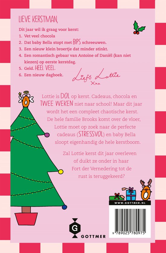 Lottie Brooks is dol op Kerstmis: cadeautjes uitpakken, zoveel KitKat Chunky's eten als ze wil, én twee weken geen school! Maar dit jaar belooft Kerst een tikkeltje chaotischer te worden dan normaal. De hele familie Brooks komt langs voor de feestdagen (met een paar onverwachte gasten...), En alsof dat nog niet genoeg is, gaan Lottie en haar vriendinnen lootjes trekken (dus moet ze het perfecte cadeautje vinden) en weet baby Bella de kerstboom te slopen. Zal Lottie de feestchaos te doorstaan, of verschuilt ze zich in haar schaamtefort totdat de kust weer veilig is? Eén ding is zeker: dit wordt een Kerstmis die Lottie nooit zal vergeten!