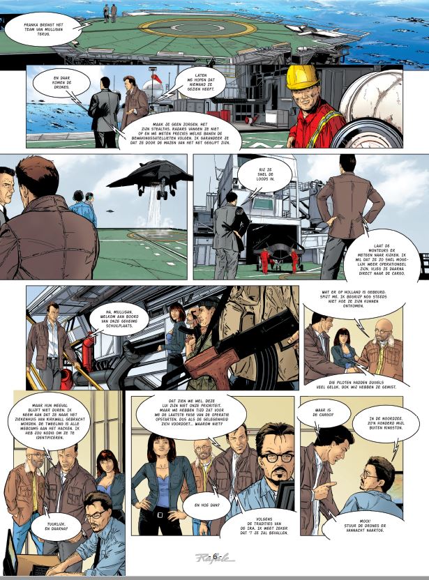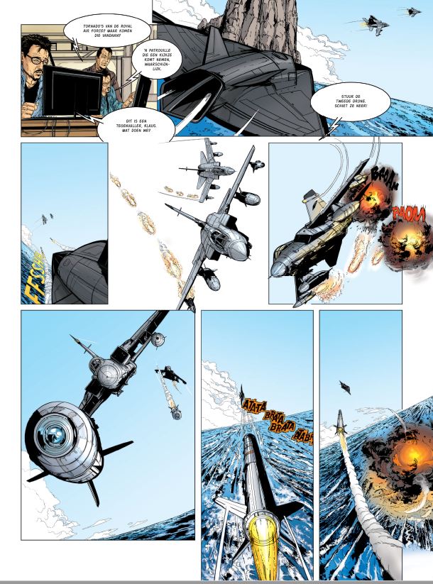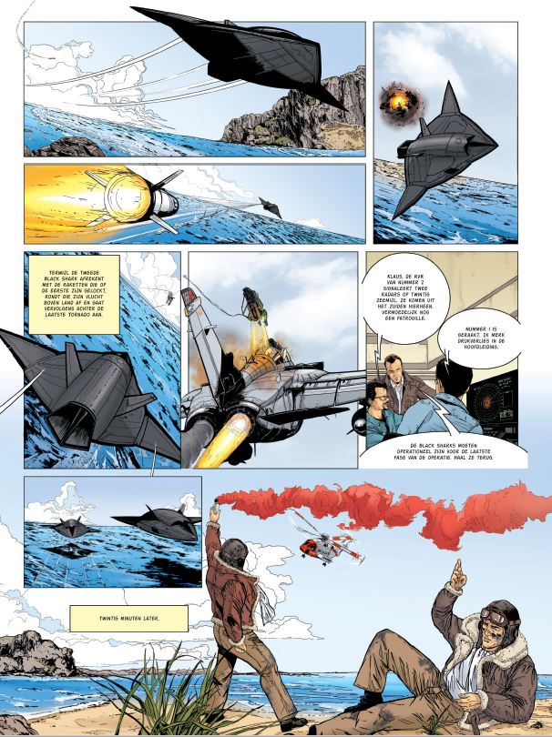 Stripscenarist Zumbiehl Frédéric (° 1965 Frankijk) was een gevechtspiloot en auteur van verschillende boeken en strips over de luchtvaart. Hij schreef mee aan volgende stripreeksen die vertaald werden in het Nederlands = 1. Tanguy en Laverdure 2. Tanguy en Laverdure Classic 3. Buck Danny 4. Buck Danny Classic Striptekenaar Lourenço Michel kennen we ook van de in het Nederlands vertaalde strip bij Dark Dragon Books Unit 66 De speurtocht naar de Black Shark-drones leidt onze helden naar Ierland, waar activisten van Anarchy met hulp van IRA-leden een dodelijke val voorbereiden. Intussen maken de leiders van de G8 zich op om naar hun thuisland te trekken, nog voor het onderzoek is afgerond. Een rampzalig idee, want Klaus Unger en zijn team hacken een onderzeese kabel en luiden zo de laatste fase van hun plan in, dat zal uitmonden in een ultieme confrontatie…