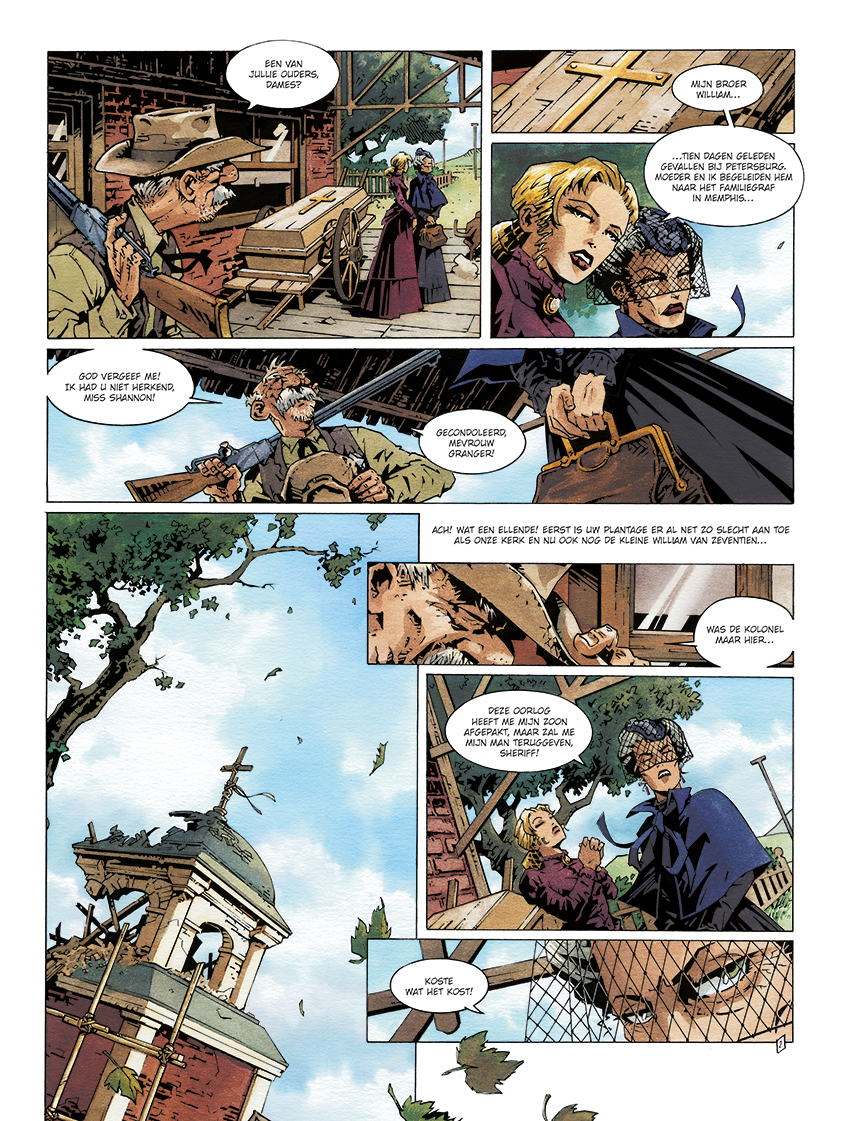 Eer, vrijheid, wraak en een handvol dollars brengen vier levens bijeen in een wilde rit door een door burgeroorlog verscheurd land. Een spannende western! Verenigde Staten, 1865. De Amerikaanse Burgeroorlog nadert zijn einde. Mevrouw Granger heeft nu nog maar één doel: haar man vinden, die gevangen wordt gehouden door de Noordelijken. Terwijl hij in Fort Mac Laglen wordt vastgehouden en zich verzet tegen stevige ondervragingen door de blauwbloezen, gaat zij zo ver, dat ze de dollars steelt, die bestemd zijn voor de reparatie van de kerk van het dorpje Church Hill. Een overval in familieverband waarvan de buit zal dienen om een leger op te richten en om haar man uit de klauwen van de vijand te bevrijden.