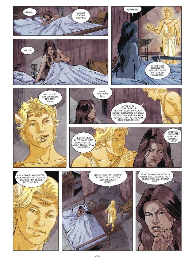 Kalypso houdt Odysseus nu al zeven jaar vast op het eiland Ogygia waar hij is aangespoeld. Zeven jaar waarin de koning van Ithaka zwelgt in verlangen naar zijn thuis, zijn mooie Penelope en zijn zoon Telemachos. Wanneer Athena medelijden krijgt met de man met duizend listen en zijn zaak bij Zeus bepleit, ziet Kalypso zich gedwongen om de man, op wie ze verliefd is geworden en aan wie ze gehecht is, tegen wil en dank te laten gaan. Odysseus begint eindelijk aan het laatste deel van zijn reis, al is die verre van voorbij: Poseidon is nog niet klaar met hem en in Ithaka doet Penelope haar uiterste best om de talloze aanbidders, die zichzelf op de troon van de rechtmatige vorst zien, af te houden …