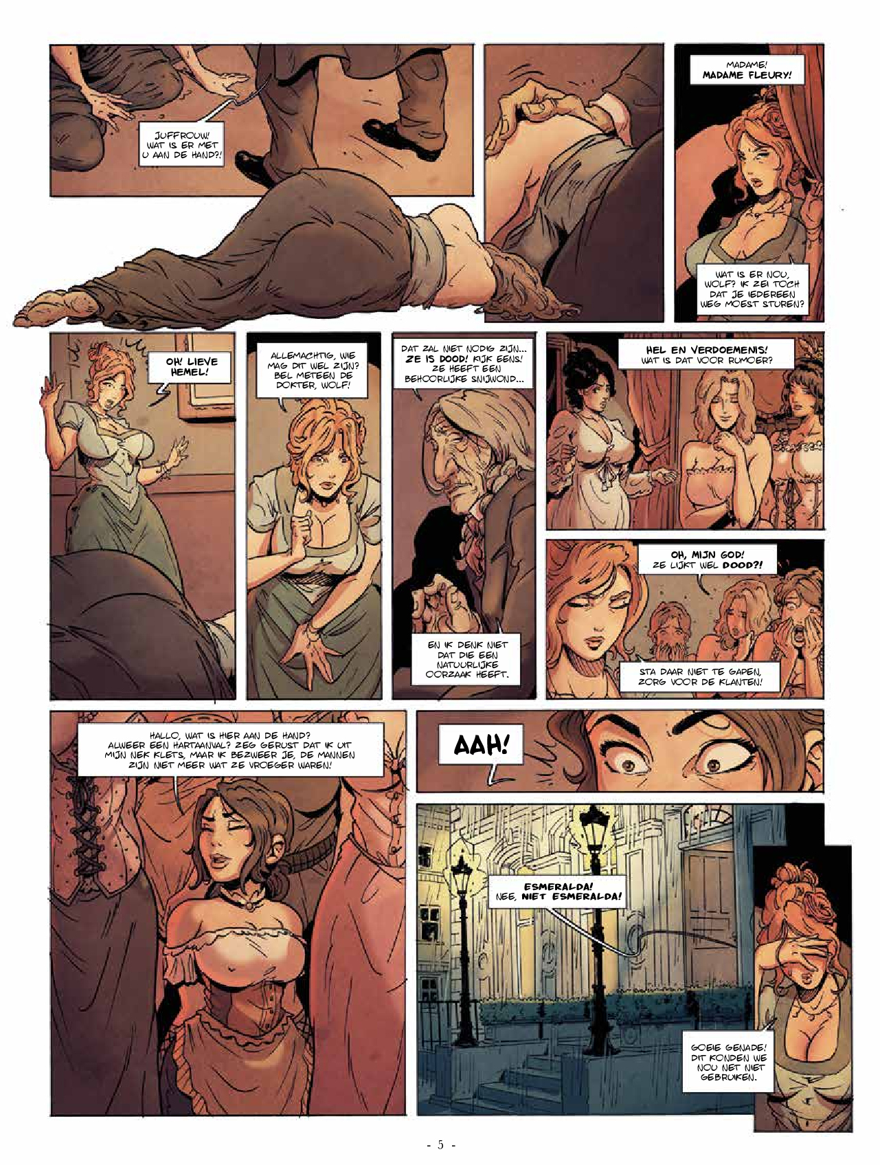 Tweede deel van deze mooie erotische strip in drie delen. Hardcover gelimiteerd Londen, eind 19e eeuw. Kort na de golf van terreur veroorzaakt door de beruchte Jack The Ripper, zet een nieuwe reeks moorden East End in vuur en vlam. Commissaris Barnes is vastbesloten om nog niet de woede van de publieke opinie te ondergaan en is vastbesloten het monster niet door zijn handen te laten glippen. Het onderzoek brengt hem bij het comfortabele en aangename huis van Madame Fleury en haar lieve bewoonsters... De mysteries van Maison Fleury Tekst & tekeningen: Gabriele Di Caro