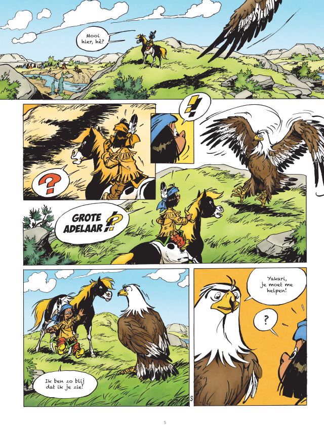 De kleine indiaan schittert dankzij de nieuwe scenarist! Al sinds hij een jonge papoose was, kan Yakari altijd rekenen op Grote Adelaar, zijn totemdier. Deze keer roept Grote Adelaar de hulp in van zijn vriend. Het leven van een kleine adelaar is in gevaar. En alleen Yakari kan hem nog redden!