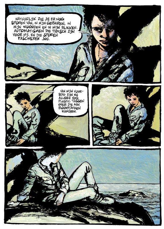 Een atelier bij de zee, een man en een vrouw, een schilder met zijn model. Een dialoog over kunst en leven. Over haar jonge leeftijd, over de buitenwijk waar zij vandaan komt en die ze definitief achter zich heeft gelaten. Over zijn maturiteit. En de schilder stelt zich vragen: hoe kun je het leven op doek zetten als je de realiteit alleen in weerspiegelingen kunt vangen? De man bekijkt zijn model, zijn minnares ... Hoe ze leeft en beweegt. Nu en dan heeft hij 'bij momenten heel even het gevoel dat hij dichter bij een van de antwoorden komt'.