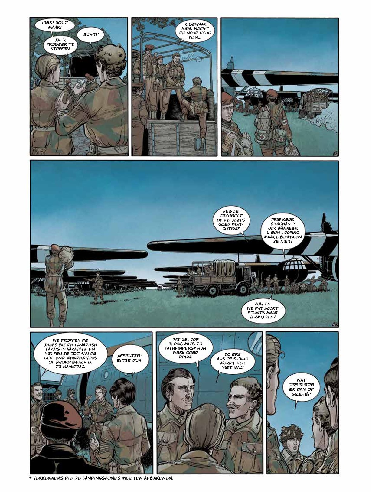 Juni 1944. Operatie Tonga leidt de luchtlanding van Britse troepen door zweefvliegtuigen in. Het toestel, bestuurd door RodTaylor en Steve Moss, is verantwoordelijk voor het leveren van uitrusting aan de eerste troepen die in de strijd betrokken zijn. Het zweefvliegtuig wordt onder vuur genomen door het Duitse luchtafweergeschut en stort meer dan 20 kilometer achter de vijandelijke linies neer. Met de hulp van het verzet en burgers zullen ze proberen naar hun eigen leger terug te keren. De ontsnapping is een oprecht eerbetoon aan de leden van het Glider Pilot Regiment. Lance Hugh Martin, zweefvlieger uit de Tweede Wereldoorlog Tekst: Philippe Zytka Tekeningen: Laurent Seigneuret