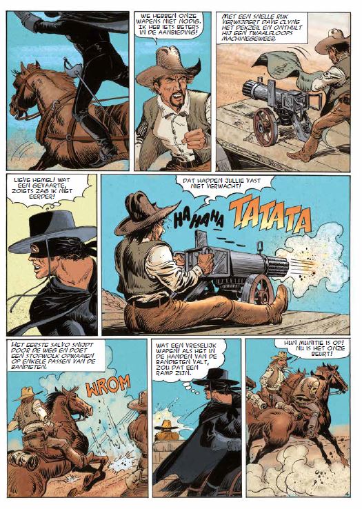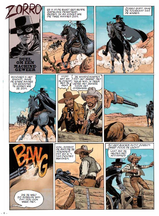 Incl. uitgebreid dossier Zorro werd in 1919 geboren uit de pen van Johnston Mc Culley. Bijna 100 jaar later heeft de gemaskerde held niets van zijn vurigheid verloren... Don Diego de la Vega, is een respectabele burger overdag, maar bestrijdt ‘s nachts het onrecht met de punt van zijn zwaard. De gemaskerde ruiter en zijn beroemde sergeants Garcia, Benardo en Tornado hebben de kindertijd van verschillende generaties op zijn kop gezet met hun romans, films, tv-series, tekenfilms en veel strips. Jean Pape was een van de meest getalenteerde tekenaars van Zorro en tekende deze avonturen meer dan 10 jaar lang. Drie van zijn mooiste verhalen zijn geselecteerd, volledig vernieuwd en ingekleurd: Duel met het machinegeweer, de ontvoering van Juanita en de gieren.