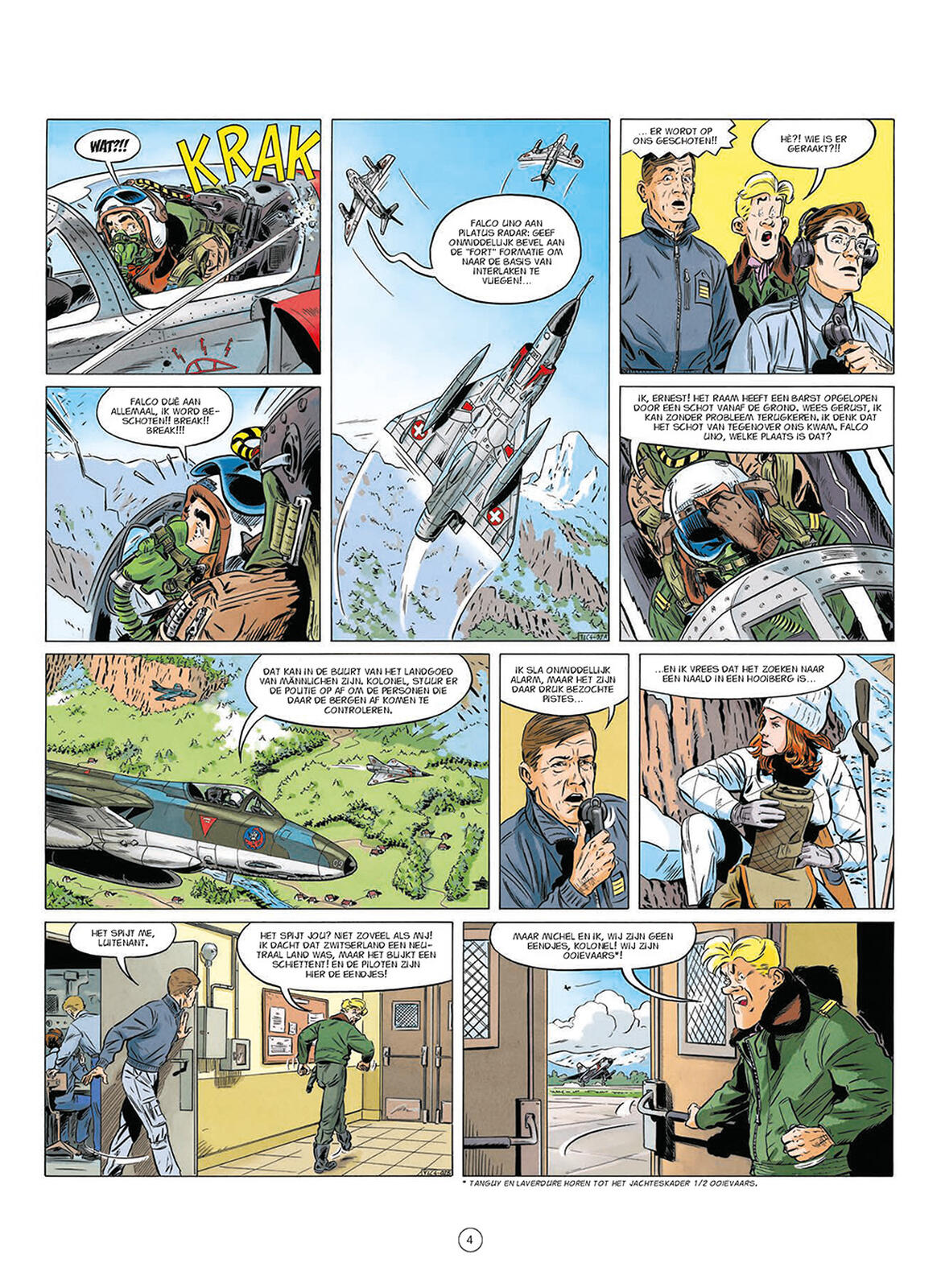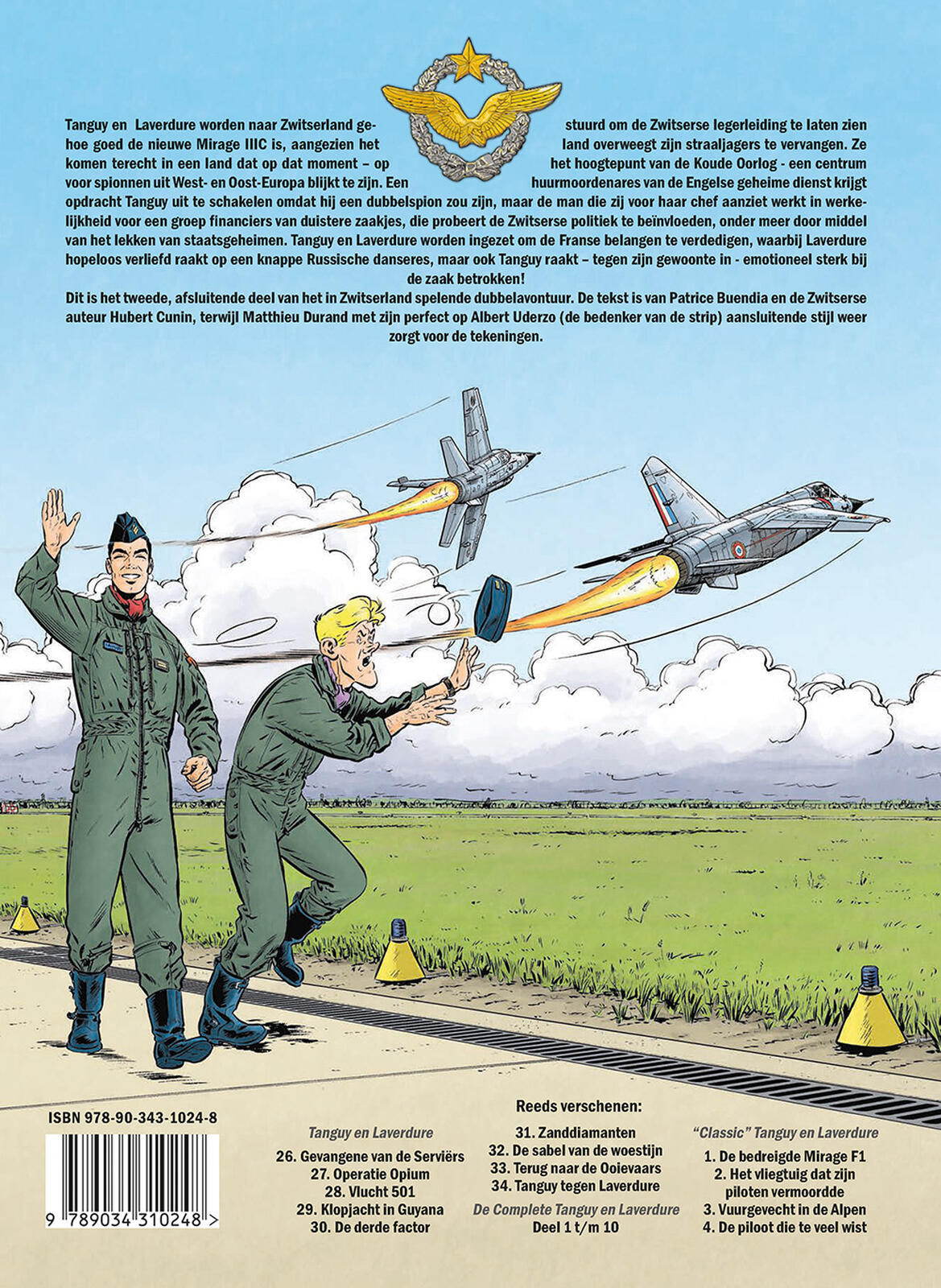 Als een Zwitsers jachtvliegtuig met de nodige vlieguren neerstort in de Alpen, wordt de vervanging van de jagers van de Zwitserse luchtvloot plotseling dringend. De Mirage III maakt een goede kans, maar goedkoop zijn die niet bepaald. Tanguy en Laverdure worden naar Zwitserland gestuurd met een Mirage met dubbele besturing, die bestemd is voor lesvluchten. Hun taak is de Zwitserse legerleiding te laten zien hoe goed de nieuwe Mirage is. Ze komen terecht in een land dat op dat moment – op het hoogtepunt van de Koude Oorlog - een centrum voor spionnen uit West- en Oost-Europa blijkt te zijn. Door de vreemde mogendheden wordt niets aan het toeval overgelaten en er wordt zelfs een huurmoordenaar op onze piloten afgestuurd!