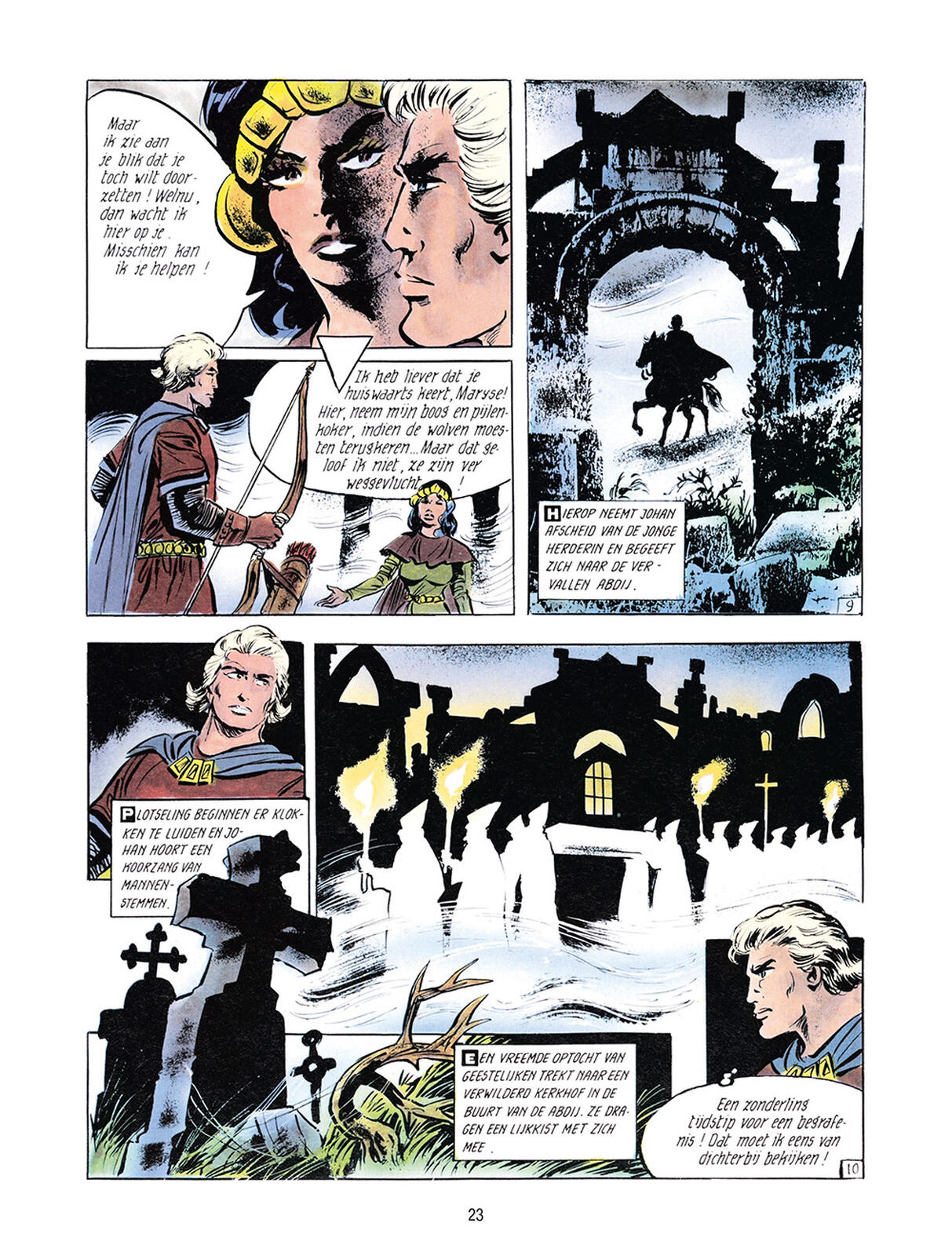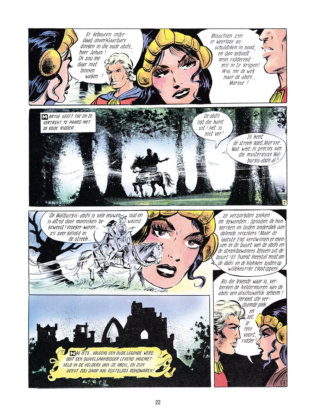 Onvermoeibaar trekt Johan, de Rode Ridder, ten strijde tegen schurken, monsters, heksen, tovenaars, wrede tirannen en boosaardige machten. Een strijd die hij, ondanks de felle tegenstand, steeds met glans weet te winnen. Vanaf album 37, De wilde jacht, kreeg het team achter De Rode Ridder versterking van Karel Biddeloo. In 1969 nam hij definitief de reeks over en verzorgde hij zowel de scenario’s als de tekeningen. Deze integrale bevat Catacomben, Nemesis, De holle aarde, Reis naar Atlantis, Magiërs van Atlantis en De drakenmeester.