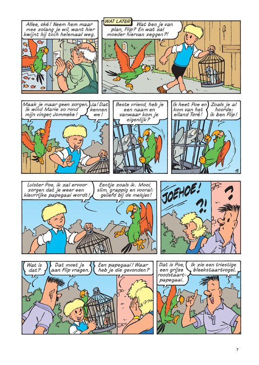 In de dierenwinkel van Zonnedorp zit een grijze roodstaartpapegaai weg te kwijnen van verdriet. Niemand wil hem kopen. Flips hart breekt om zijn soortgenoot zo te zien en vraagt of de arme papegaai een tijdje bij hen mag komen wonen. Eenmaal thuis ontdekken onze vrienden dat hun nieuwe maatje Poe nog andere zorgen aan zijn hoofd heeft. Op het eiland waar hij vandaan komt, worden zijn soortgenoten massaal gevangen om, net zoals hij, hier verkocht te worden. Als er geen actie wordt ondernomen, zijn de papegaaien binnenkort met uitsterven bedreigd. Maar dat hoef je Flip geen twee keer te zeggen!