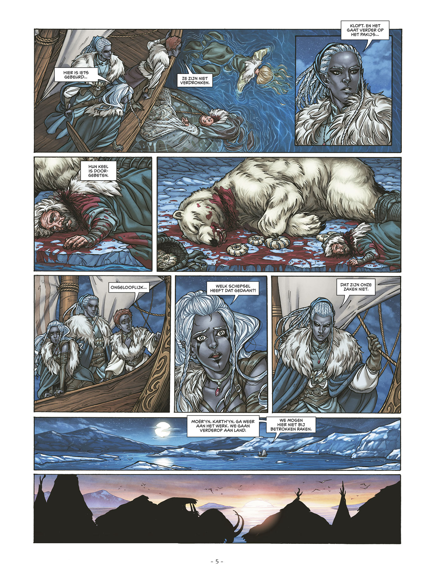 Gaw’yn is op zoek naar de saffieren dagge waarmee hij zich hoopt te verlossen van zijn duistere zijde. In het gezelschap van twee jonge, zwarte elfen speurt hij op de ijsvlaktes in het hoge noorden naar de mythische stad Skögsta. Maar in de buurt van een vreemd, seizoensgebonden kamp, kruist hij het pad van een oeroud roofdier, dat een geheim over de diepste aard van de elfen in zich meedraagt