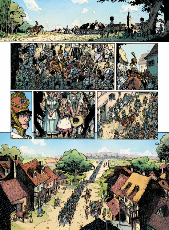 Mei 1809. De Grande Armée van Napoleon staat op het punt de Donau over te steken op de enorme drijvende brug die de Franse genie in één nacht heeft gebouwd. Aan de andere kant van de rivier wachten aartshertog Karel en de Oostenrijkse legers op hen, vastbesloten de vernedering van Austerlitz te wreken. De strijd om EBling is de eerste grote slachting van de moderne oorlog: een dertig uur durende strijd zonder winnaar of verliezer die meer dan veertigduizend doden in de tarwe achterlaat. Van geniesoldaten tot voltigeurs, van huzaren tot bevelhebbers, aan de wallen in Wenen aan de Donau tot in de dorpen in vlammen: De Slag is veel meer dan een roman of een historische strip, het is een gigantisch fresco. Dragonders van de grens Buonaparte Berezina