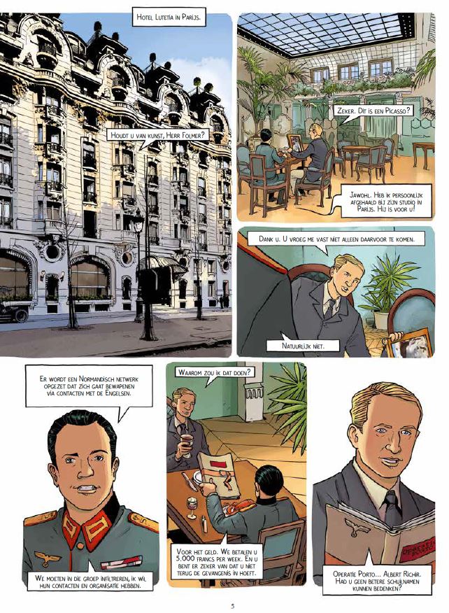 September 1941. De Duitse inlichtingendienst probeert de netwerken van verzetsstrijders die zich proberen te organiseren te vernietigen. Doc, nog steeds in de vrije zone, keert terug naar het dorp om zijn vrienden weer te zien en in contact te komen met het Hectornetwerk. Andréas Folmer, een undercoveragent, sluit zich ook bij hen aan. Operatie Porto kan beginnen... Ondertussen schiet het complete vlindernetwerk opnieuw te hulp bij de parachutedroppings van wapens uit Londen. Jong verzet 5. De spion onder ons Tekst: Franck Dumanche Tekeningen: Nicolas Otéro