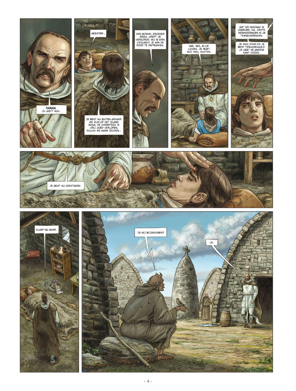 Op het eiland Mona komt de jonge Taran geleidelijk terug op kracht nadat hij bijna verdronken was in een grote storm. Vervolgens vertrekken ze naar IJsland. Bij een tussenstop in Schotland lopen ze een Picten-clan tegen het lijf. Hun druïde, Leuweg, vraagt om hulp om de Steen van het Lot mee te brengen, die een Vikingstam ontvreemd heeft en zich in IJsland bevindt. Leuweg weet hen te overtuigen dat het lot van de ketel van Dagda met de steen verband houdt. Gwenc'hlan stemt ermee in om de clan te helpen, en ze vatten de reis naar IJsland aan. Maar ze worden op de voet gevolgd door mannen gekleed in sombere mantels ...