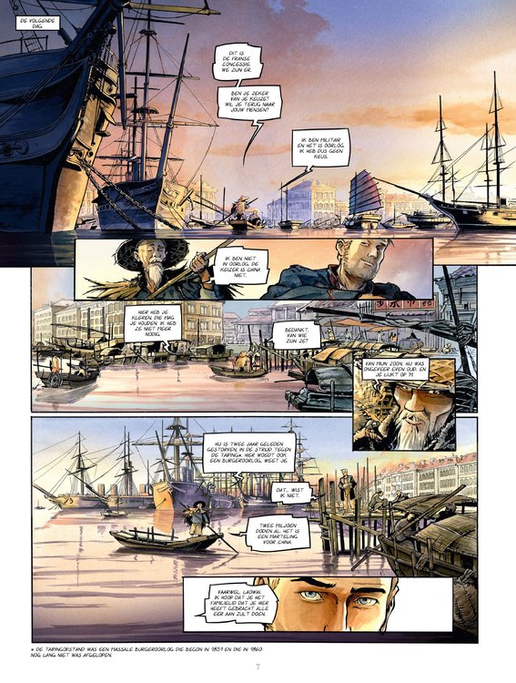 François Montagne is in opstand gekomen toen hij ontdekte dat zijn oversten de oorlog tegen China gebruiken om een schimmige opiumsmokkel op te zetten. Hij die dacht dat hij de eer van zijn familie zou kunnen redden begrijpt dat zijn eigen vaderland steeds dieper wegzakt in de schande. François wordt in de tang genomen door zijn oude wapenbroeders en de Chinese vijand. Het eerste slachtoffer van een oorlog is de waarheid, zegt men wel eens. Dat voelt François aan den lijve. Terwijl alles in een stroomversnelling raakt en het Engelse en Franse leger Peking naderen, zit hij meer dan ooit middenin de Opiumoorlog! Groots avontuur rond de oorlogsexpeditie van Frankrijk én Groot-Brittannië tegen China. Scenario van Alcante (Rani, XIII Mystery) en Bollée (Deadline, XIII Mystery), tekeningen van Xavier Besse (De herinnering van Abraham met Steven Dupré).