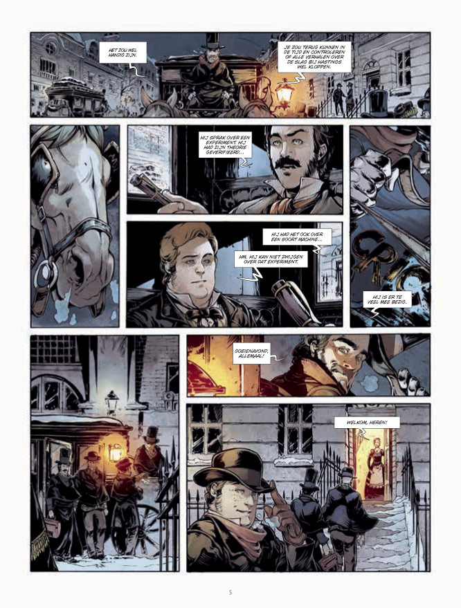 Londen aan het einde van de 19de eeuw. Een groepje vrienden hangt aan de lippen van een man die beweert de eerste tijdreiziger te zijn. Zijn verhaal voert hen naar het jaar 802 701. De aarde wordt bevolkt door de Eloi, afstammelingen van de mens die vreedzaam en harmonieus samenleven in een immense Tuin van Eden. Maar schijn bedriegt. Diep onder de grond leeft ook een andere soort: de Morlocks, witte aapachtige wezens met rode ogen die het zonlicht schuwen. 's Nachts komen ze naar boven om Eloi te kidnappen ... Verstripping van de allereerste sciencefictionroman waarin doorheen de tijd wordt gereisd. Collectie rond de grondlegger van de hedendaagse SF.