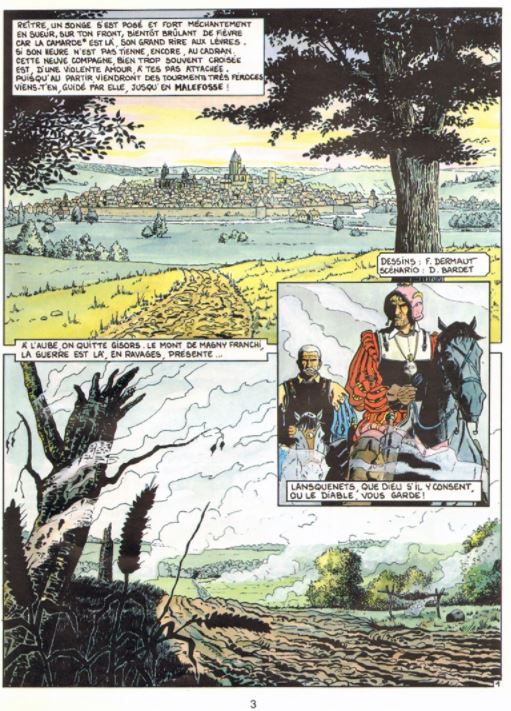 Augustus 1589... In naam van God houden de Heilige Liga en de hugenoten elkaar bij de keel. Wie als eerste de ander wurgt, wint! Maar de twee partijen zijn aan het einde van hun krachten. Terwijl massa’s geloofsfanatici niet langer een verstard lot kunnen beïnvloeden, opereren bepaalde individuen in de schaduw om dat lot terug op gang te brengen. In deze nieuwe Malefosse slaan Gunther en Pritz dat pad in. Ze hebben een missie en weinig middelen om hun taak te vervullen, in een context waarbij alle machten zich tegen elkaar keren, elkaar kruisen en uitschakelen, en duizend gezichten aannemen van de leugen, het genot en de dood die op de loer ligt... Van de striptekenaar Dermaut kennen we ook volgende stripreeksen 1. Rosa 2. De wegen van Malefosse