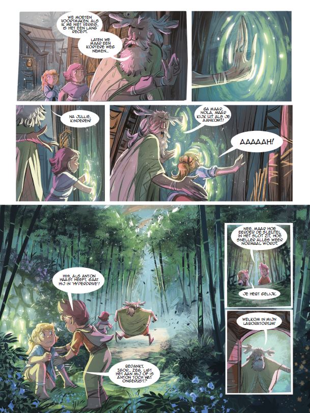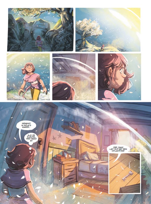 einde van de eerste cyclus, tweede cyclus in de maak.... Striptekenaar is Gillet Jérôme ofwel Gijé (Kongo, °1988). Stripscenarist is Carboneill Bénédicte ofwel Carbone ( Frankrijk, °1973) en schreef ook volgende stripreeks • Angelique, complot in het paleis korte inhoud= Dankzij het verrassingsbezoek van Siloé en haar broers aan de Hexowereld heeft Nola heel wat bijgeleerd over Pandoria en over haar mama. Maar wanneer ze een vreemde sleutel vindt, die ze herkent uit het boek van Annah, stapelen de vragen zich op. Waarop past die sleutel dan? Om dat te weten te komen, trekt Nola weer naar Pandoria. Na een onrustwekkende verdwijning moeten Nola, Igor en Andrea al snel op onderzoek, een onderzoek dat het leven in Pandoria weleens overhoop kan halen… Nola is onverschrokken en schalks, listig en bovendien ook een briljant spreekster. De idealiste gaat met haar groot hart haar zaak bepleiten in de hogere kringen. Ze pleit voor gerechtigheid en grondrechten, zoals liefde zonder discriminatie. En de sleutel van Annah opent misschien wel de poort naar nieuwe avonturen door nieuwe mysteriën bloot te leggen in deze betoverende wereld.