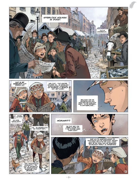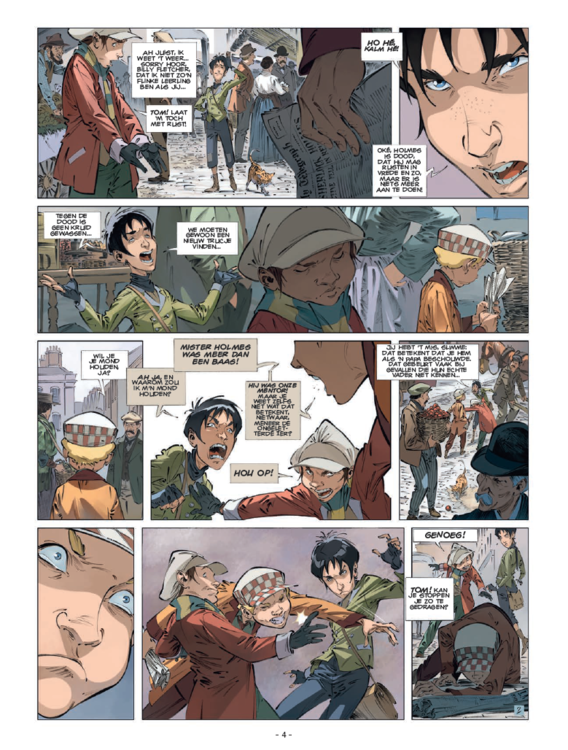 Sherlock Holmes is niet meer! Dat zeggen de kranten toch ... Tijdens een ultieme confrontatie met de duivelse Moriarty, stort de beroemde detective in de watervallen van Reichenbach. Door de shock van dit tragische nieuws, zijn onze partizanen van Baker Street compleet ontredderd en, na een heftige ruzie, spat de groep uit elkaar. Billy, de speurneus, Black Tom, de inbreker, en Charlie, het meisje gekleed als jongen (en niet te vergeten de kat Watson!) gaan elk hun eigen weg - en raken al snel in de problemen. Ze moeten nu zonder hun mentor de valkuilen en gevaren van de Londense onderwereld trotseren ... En daarbovenop zit een van hun beruchtste vijanden hen op de hielen, vast van plan de Vier van Baker Street een kopje kleiner te maken ... David Etien is een Franse Striptekenaar geboren in 1981 en tekent momenteel deze reeksen: De vier van Bakerstreet a href='/R-stripverhalen-op-zoek-naar-de-tijdvogel-bestellen.asp'> Op Zoek naar de tijdvogel Rommelgem Chito Grant Djian Jean-Blaise ( Frankrijk, °1953) kennen we ook als de stripscenarist van volgende stripreeksen : Normandie 44 Milana en Arlof Middernacht Liberty Bessy Julia Von Kleist Fatal Jack De Vier van Baker Street De Minderbroederschool AANRADER > De Kampioenen van Albion De Grote Dode