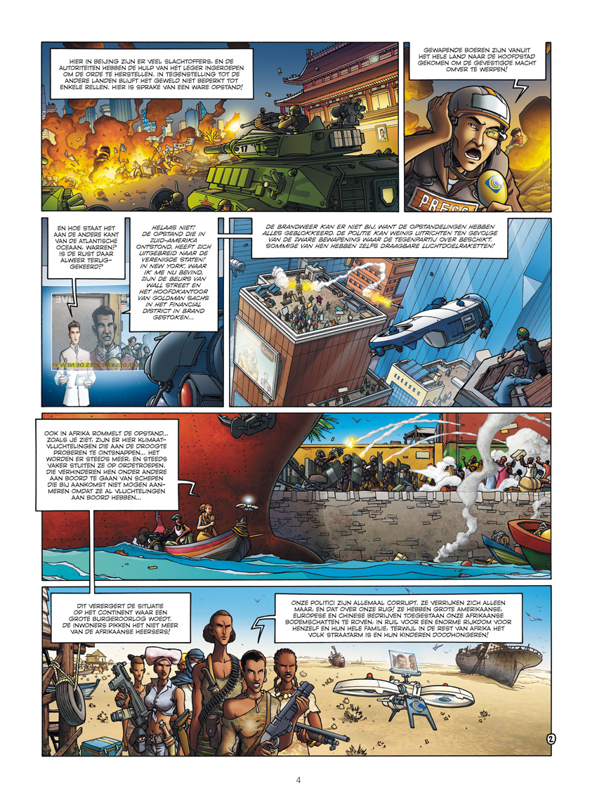 Een wereldwijde burgeroorlog teistert de aarde. Overal komt de burgerij in opstand tegen de macht van het geld. Banks maakt gebruik van de onoverzichtelijke situatie en ontmaskert de verraders die hem hadden willen ombrengen. Hij volgt het spoor van professor Seed en treft haar ondergedoken aan in een geheim Golden City-laboratorium op de maan. Voortvluchtige criminelen, de vijanden van Banks, doen hem uiteindelijk belanden bij een explosieve situatie in het wrak van de gezonken eerste Golden City ... Een uniek sciencefiction-avontuur in een niet zo heel verre toekomst: 2099.