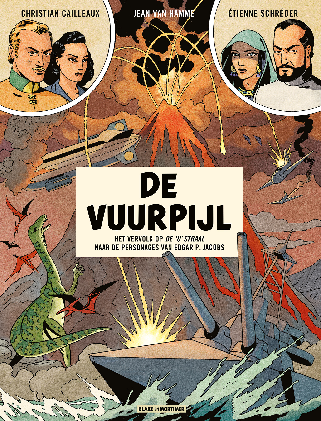 80 jaar na de verschijning van deel 1 van de U straal krijgen we een vervolg. op scenario van Van Hamme. Er bestaat ook een Exclusief Stripweb Pakket ( => De Vuurpijl ) met daarin 1. EEN EXCLUSIEF DOSSIER van 16 pagina's met allerlei exclusieve weetjes en foto's over het ontstaan van de album en ook over de U straal. ==> Blake en Mortimer De Vuurpijl STRIPWEB DOSSIER 2. een EXCLUSIEVE EX LIBRIS GEMAAKT VOOR STRIPWEB//BDWEB gelimiteerd op 200 ex waarvan 50 gesigneerd voor de VIPclub meer info over de VIP club? => Stripweb VIP club Jean Van Hamme is niet alleen een van de scenaristen van Blake en Mortimer, hij schreef ook een vervolg op een andere strip van Edgar P. Jacobs: De 'U' Straal, de rechtstreekse voorloper van Blake en Mortimer en Jacobs' eerste volwaardige stripverhaal. Het album is getekend door Étienne Schréder, die bij zowat alle albums na Jacobs heeft meegeholpen als inkter of decortekenaar. Voor dit vervolgalbum werkte hij samen met Christian Cailleaux, de tekenaar van het Blake en Mortimer-avontuur De Schreeuw van de Moloch. Het album van 48 pagina's verschijnt in softcover en als luxe met linnen kaft. De 'U' Straal verscheen tijdens de Tweede Wereldoorlog in het Belgische stripweekblad Bravo! toen Jacobs de vraag kreeg om een nieuwe sf-reeks te bedenken nadat de Duitse censuur strips uit de VS in de ban sloeg. Daardoor verdween Flash Gordon van Alex Raymond uit Bravo! en kwam De 'U' Straal in de plaats. Een bijzondere, trouwe lezer lijfde Jacobs daarna in om aan zijn eigen reeks mee te helpen. En zo kwam een samenwerking tot stand tussen die lezer, Hergé, en Jacobs voor de reeks Kuifje. Van Hamme werkte met dezelfde personages uit De 'U' Straal een volledig nieuw verhaal uit dat als vervolg te lezen is. Daarin geeft hij een verklaring voor de titel, want dat heeft Jacobs zelf nagelaten te doen in zijn verhaal. Bruno Tatti kleurde niet alleen dit verhaal in, hij voorzag ook de herdruk van De 'U' Straal van nieuwe kleurtjes. Hij werkte mee aan reeksen als XIII, Michel Vaillant, Op Zoek naar de Tijdvogel - Voor de Zoektocht, Iznogoedh en In de Schaduwen. 'Tachtig jaar na hun verschijning in het Belgische weekblad Bravo! komen de personages uit De 'U' Straal van Edgar P. Jacobs weer tot leven. De wrede Babylos III, keizer van Austradië, beveelt generaal Robioff, de hoogste leider van zijn leger, de Zwarte Eilanden en de kostbare uradiumvoorraad in beslag te nemen. Met dit zeldzame metaal, in combinatie met de 'U' straal, zou het mogelijk moeten zijn een apocalyptisch wapen te maken. Professor Marduk onthult het geheim van dit wapen aan de Grote Raad van Norlandië, de gezworen vijand van Austradië. Maar terwijl de oorlog uitbreekt en de tegenstander probeert om het geheim in handen te krijgen, wordt het gebruik van uradium, de ‘steen van leven en dood’, verboden door Puncha Taloc, de god van het vuur en beschermer van de Zwarte Eilanden. Onze Norlandische helden zullen heel wat moeten doen om voor dit angstaanjagende dilemma een oplossing te vinden...'