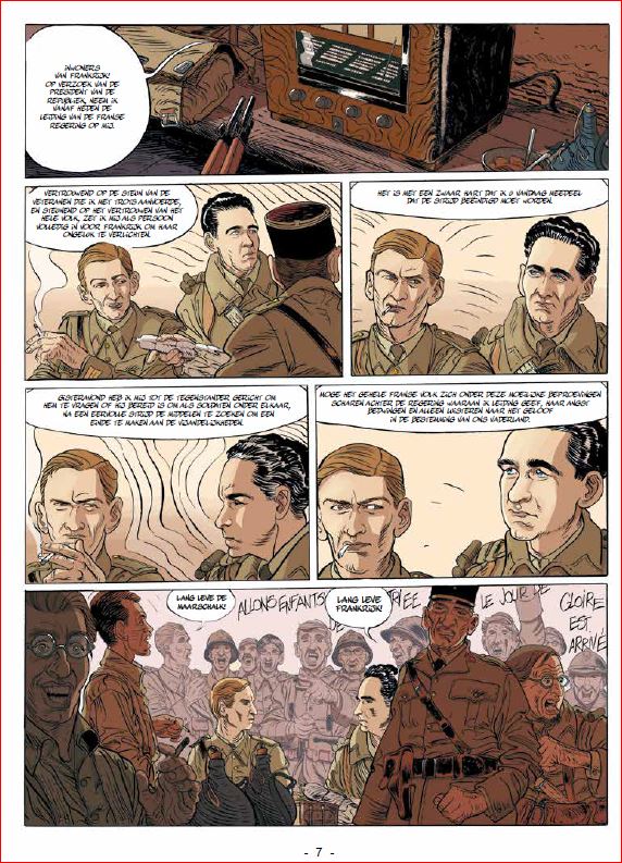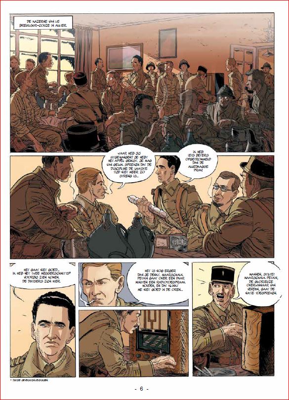 Op 17 juni 1940 vernam de jonge tweede luitenant Pierre Messmer met verbazing dat maarschalk Pétain riep om een einde aan de strijd te maken. Voor hem honderd en één verraad, en hij verenigt maar één oplossing: ongehoorzaam zijn om de eer van Frankrijk te slenteren. Met zijn vriend Jean Simon. soldaat zoals hij. de toekomstige premier neemt de weg naar Engeland: op verzoek van generaal de Gaulle bereidt hij zich voor op de strijd van zijn leven, die van het verzet. Van Striptekenaar Tarral Philippe ( Frankrijk, °1962) kennen we ook volgende stripreeksen : De wapenbroeders-van-de-bevrijding De Koerier van Casablanca AANRADER Stripscenariste van dit deel is Valenti Catherine ( Frankrijk) die hiermee haar enige strip schreef.