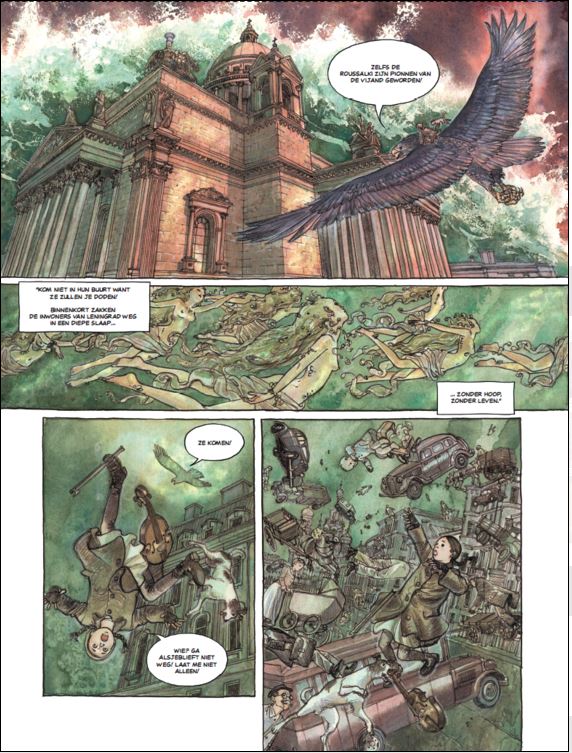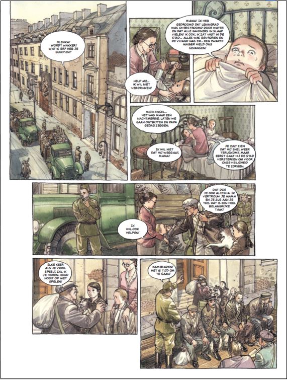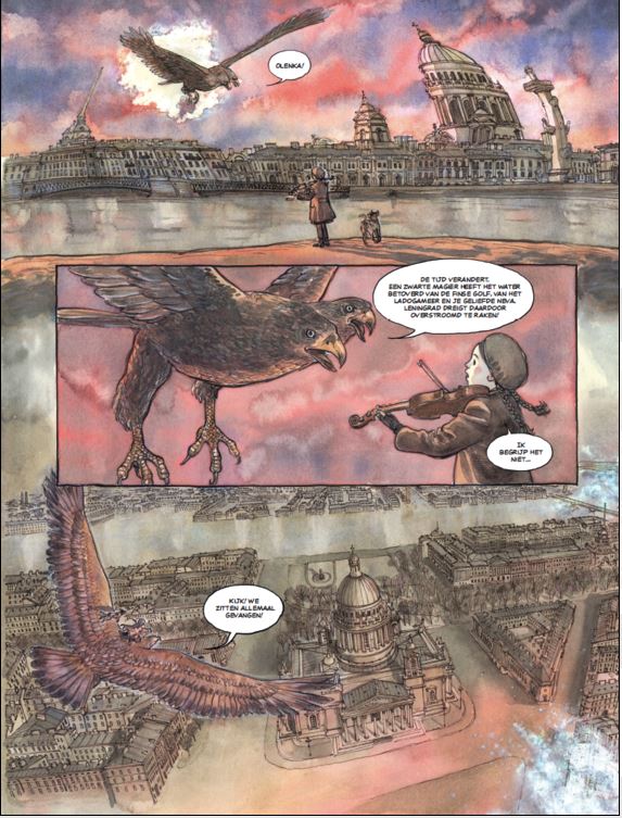Sovjet-Unie, 1941. Het leven van Olenka verandert radicaal als Nazitroepen de Sovjet-Unie binnenvallen en de stad Leningrad belegeren. Het kleine meisje van acht verliest haar ouders en haar broer en houdt zich schuil in hun geruïneerde appartement met alleen haar hond. Olenka probeert zo goed en zo kwaad als het kan om niet te sterven van honger of bevriezing. De enige manier om haar lot even te vergeten is door de snaren van haar viool te laten trillen. Op een dag ontmoet ze in een droom een mysterieuze tweekoppige adelaar die haar uitlegt dat de hele stad lijdt onder een vervloeking. Alleen de muziek van Olenka is in staat om de ijzige betovering die de godin van het Leven, met alle inwoners van Leningrad, gevangen houdt te doorbreken. Maar welke prijs moet Olenka daarvoor betalen? Een verhaal over de verschrikkingen van de oorlog met de zachtheid van een sprookje ... Vergelijkbaar met Jonas Fink en Le Pianiste is Het pad van het leven een sprookje dat poëzie, geschiedenis en fantasy mengt en het drama van de oorlog reconstrueert door de ogen van een kind. Waar eindigt de werkelijkheid en begint de fantasie?