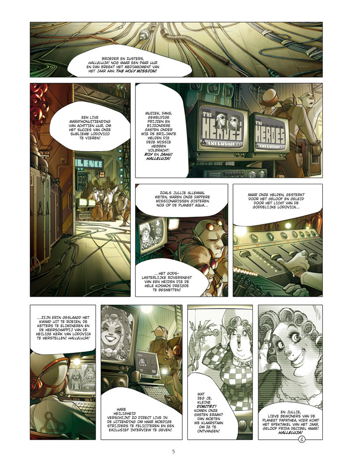 Het grootste televisiestation van de planeet staat op het punt om het succes van de Aqua-missie bekend te maken, en daarmee zal de hegemonie van pausin Lodovica in het hele sterrenstelsel worden gevestigd. Voor die bekendmaking is een enorm ruimtestation in gereedheid gebracht. Onder duizenden halogeenspots worden de genodigden gepresenteerd door Frida Decibel, een lokale beroemdheid die zich nergens voor schaamt. Maar onder die genodigden bevindt zich een pop die alles kan veranderen. Haar naam is natuurlijk Noa. Sky Doll is een duizelingwekkende reis door een bont universum, met ruimtepausen en interstellaire vragenuurtjes over geloofskwesties. Prachtig getekend door Barbucci die ook samen met Canepa het verhaal schreef.