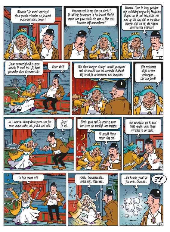 Door Peter Van Gucht en Luc Morjaeu, nu al jarenlang de vertrouwde tandem aan het roer van Suske en Wiske Lambik krijgt van een oude waarzegster een amulet met voorspellende gaven in handen. De amulet maakt hem gevierd en beroemd maar ook steeds ongelukkiger. De toekomst die hij voor sommige mensen voorspelt, is helemaal niet zo rooskleurig. Hij wil weer af van zijn gave maar ondervindt al snel dat dat alleen mogelijk is door de amulet terug te brengen naar zijn oorspronkelijke eigenaar, de Indische godheid Garamasala. Helaas wordt hij achternagezeten door een collegawaarzegster die de amulet voor zichzelf wil. Als ze daarin slaagt, zal Lambik sterven...