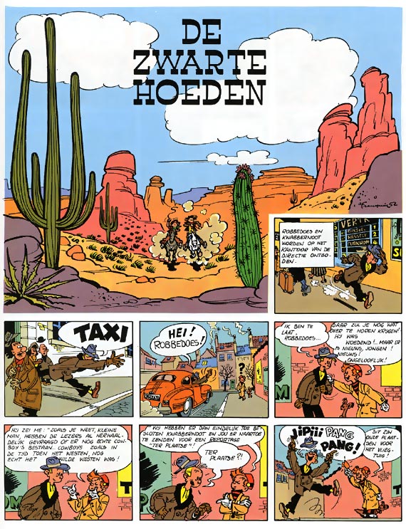 Robbedoes en Kwabbernoot vertrekken naar de Far West voor een reportage en worden aangeworven als sheriff. Robbedoes ziet er misschien nog steeds uit als de keurige piccolo in rood uniform die hij ooit was, maar zijn leven is nu wel heel wat avontuurlijker dan dat van een hotelhulpje. Samen met zijn onafscheidelijke vriend Kwabbernoot en Spip, de grappige eekhoorn, vecht Robbedoes overal ter wereld tegen misdadigers. En zijn tegenstanders zijn niet min: zo moet hij het opnemen tegen de verschrikkelijke geleerde Zorglub of de boosaardige piraat John Helena, tegen de Italiaanse maffia en Chinese gangsterbendes in New York of gaat hij in Palombië het geheim van een raadselachtig dier ontsluieren: de Marsupilami.
