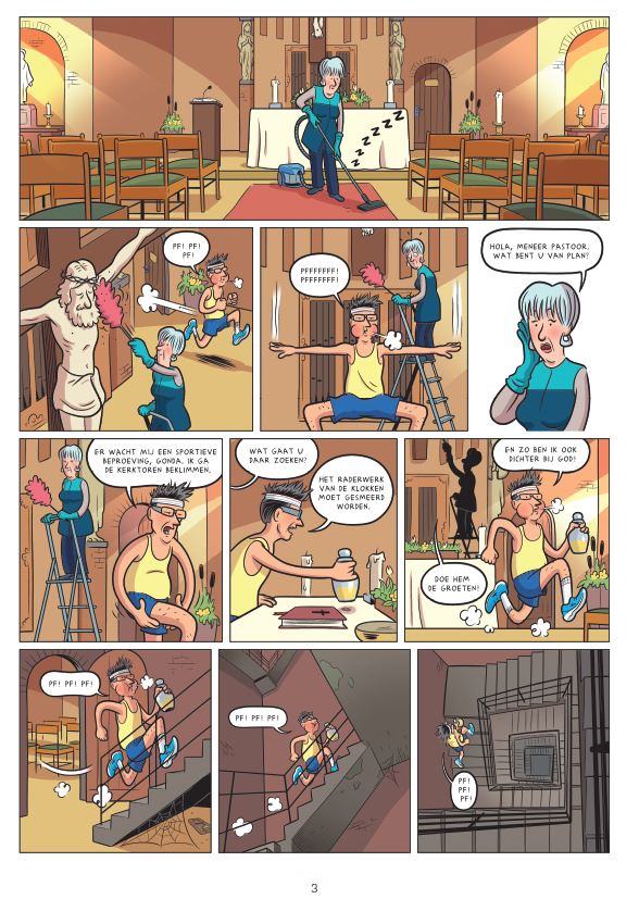 Meneer pastoor klimt regelmatig in zijn klokkentoren om de buurt in het oog te houden met een verrekijker. Op een dag is hij zo de bevoorrechte getuige van een occult ritueel waarbij veel bloed vloeit. De pastoor doet hiervan meteen aangifte op het politiekantoor maar niemand gelooft hem. Het klinkt allemaal nogal verward en hij deed de laatste tijd al een beetje vreemd sinds hij eens van de trappen naar beneden gedonderd is. Terwijl meneer pastoor opgesloten wordt in een psychiatrisch instituut, gaan de rituele offers gewoon door. Hoe komt daar een eind aan?
