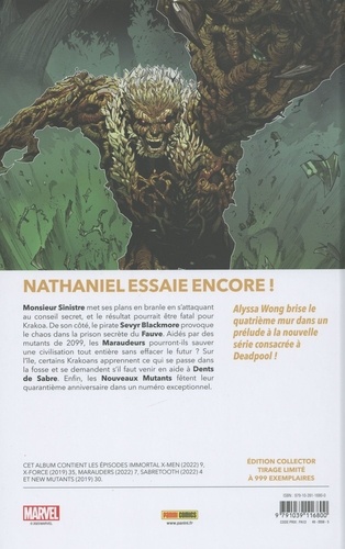 Que manigance Sinistre ? Les choses se gâtent au sein du Conseil Secret ! Les plans du Fauve partent en cacahuète, et les conséquences pourraient être très graves pour Maverick et le reste d'X-Force. Les Maraudeurs du Capitaine Pryde reçoivent de l'aide d'un échappé de l'an 2099. Les Nouveaux Mutants fêtent leurs 40 ans de carrière dans les comics, et les aventures de Dents de Sabre se poursuivent. Les choses s'accélèrent dans l'univers mutant, alors que Kieron Gillen (Judgment Day) tisse la trame qui conduira très prochainement à l'évènement Sins of Sinister. L'univers mutant imaginé par Jonathan Hickman est toujours aussi populaire, quatre ans après son lancement.