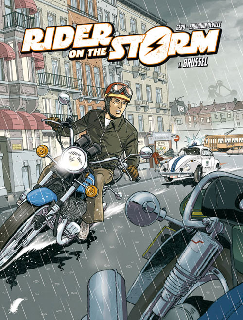 Brussel, oktober 1974. Gaspard Sarini, een jonge man van 20, droomt ervan om racepiloot te worden. Na strubbelingen met zijn ouders, die deze carrièrekeuze afkeuren, is hij verplicht hard te werken om zijn eigen motor te kunnen betalen. Met zijn Suzuki GT 750 kan hij eindelijk enkele races meeracen. Maar dan begint het drama ... Zijn ouders worden in koelen bloede vermoord, en Gaspard kan ternauwernood ontsnappen aan de gangsters ... Met een resoluut gekozen vintage stijl speelt Rider on the Storm zich af in 1975 in Brussel, dat volop in economische, architecturale en culturele verandering zat. Hij leidt ons naar al haar mythische plekken en biedt ons 'rock en motoren'.