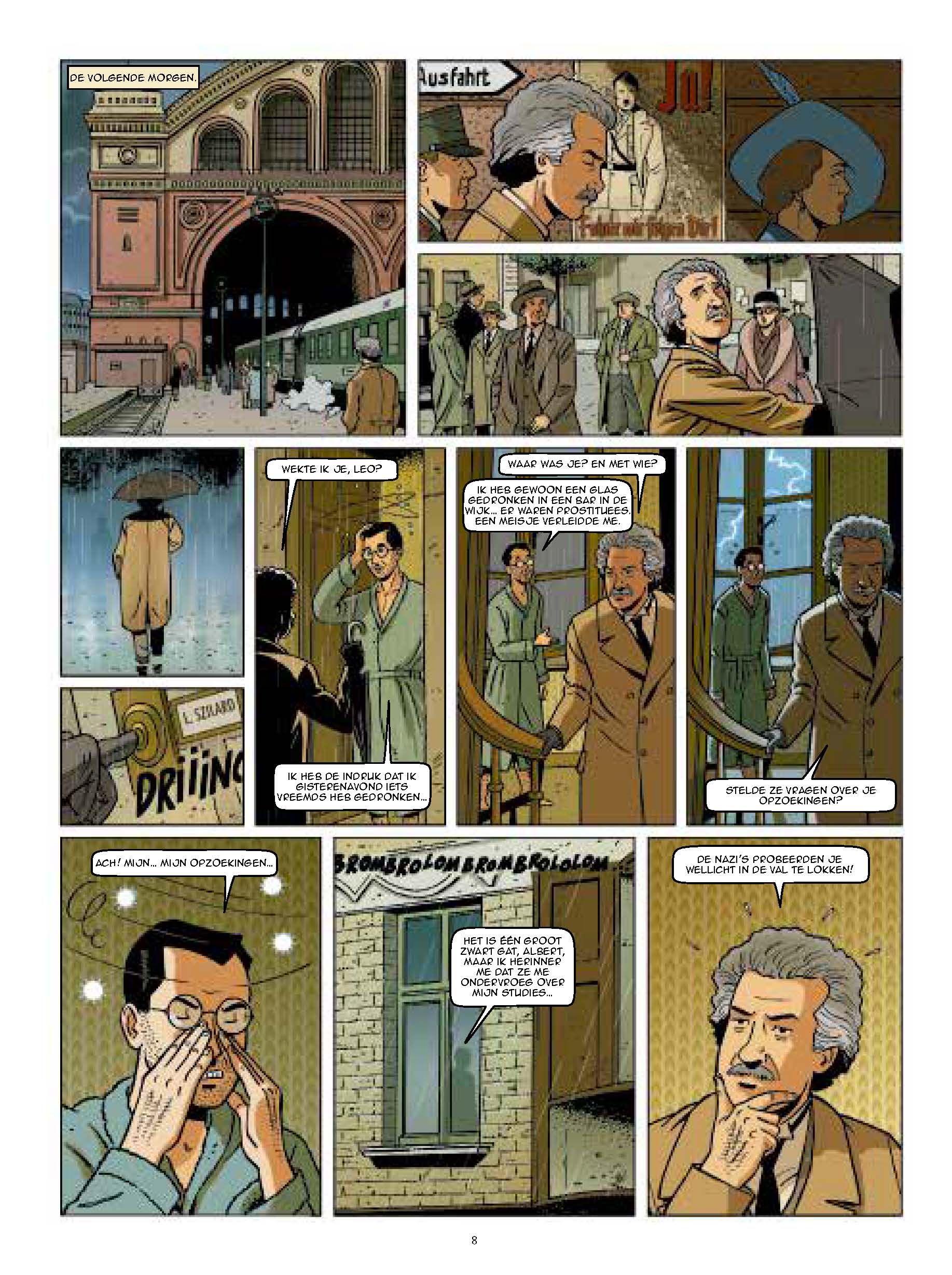 Ook zijn leerling en vriend, Léo Szilard, wist nog net op tijd te vluchten. Die werkte uiteindelijk nog mee aan de ontwikkeling van de atoombom in het Manhattanproject. Het schilderij van Einstein met de verborgen wiskundige formules bezorgt ons leuke fictie en spanning, die Baudoin Deville (Berlijn 61, Rider on the Storm, Inno 67) vermakelijk in beeld brengt. In het restaurant Au Coeur Volant kunnen we genieten van de ontmoeting tussen Einstein en James Ensor. Veel dorst zullen ze nadien niet meer gehad hebben.