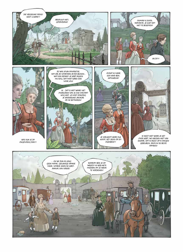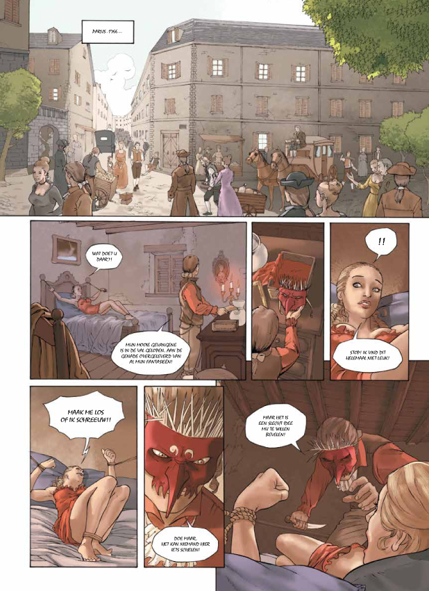 Parijs, 1766. Diamante woont de begrafenis bij van haar oudste zus die afschuwelijk vermoord werd. Tijdens de uitvaart benadert een onbekende haar. Ze beweert haar te kunnen informeren over de mysterieuze omstandigheden omtrent de moord. Maar de weg naar de hel is soms geplaveid met goede voornemens! Als jonge vrouw uit de rijke burgerij, die zich gehoorzaam schikt naar de fatsoensregels, komt Diamante in aanraking met de wereld van de libertijnen die alle richtlijnen van de maatschappij minachten. En zij dansen naar de pijpen van de goddelijke markies Donatien Alphonse François de Sade! Laatste album van de populaire reeks over de macht van erotiek en een eeuwige strijd tussen een broederschap en een geheime vrouwenorde.