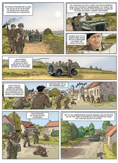 D-day. De grootste militaire operatie van de Tweede Wereldoorlog! Er zijn al meer dan twintig jaar verstreken sinds die verschrikkelijke augustusdagen van 1944... Op dat moment streed Krzysztof Jakubek onder het bevel van luitenant-kolonel Aleksander Stefanowicz van de 1ste Pantserdivisie van generaal Maczek. De 'Polen van de fuik van Falaise', zoals ze vandaag nog worden genoemd... Ze hadden Engeland bereikt na Hitlers invasie van Europa en op 30 juli 1944 gingen ze aan land in Arromanches. Na betrokken te zijn geweest bij de gevechten ten zuiden van Caen zouden ze een hoofdrol spelen bij de afsluiting van de Falaise-vallei. 19, 20 en 21 augustus 1944 zullen voor altijd in hun geheugen gegrift blijven. Drie dagen en drie nachten waarin de ingesloten Duitse legers uit alle macht en met de moed der wanhoop probeerden uit een omsingeling te komen die met het uur strakker werd. Drie dagen en nachten van hevige strijd die het einde van de Slag om Normandië inluidden. Normandië, juni '44 is een reeks van 10 delen. Ieder album bevat een uitvoerig historisch dossier.