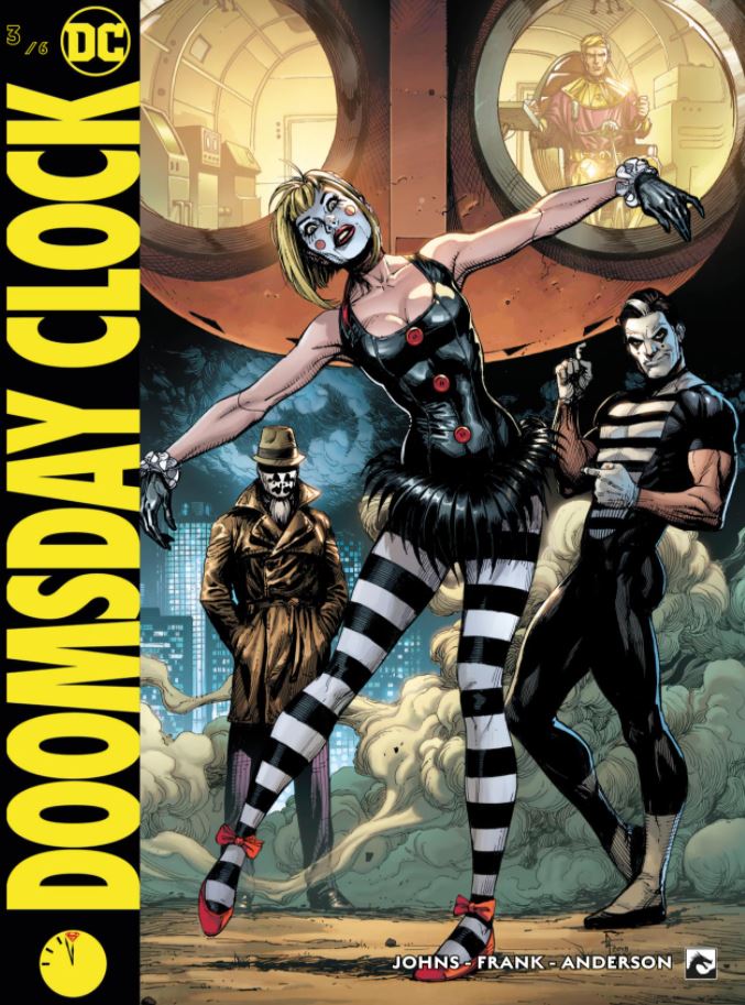 In april publiceert Dark Dragon Books de eerste twee delen van de superheldenreeks Doomsday Clock, in juni volgen de delen 3 en 4, alle in softcover, door het duo Gary Frank en Geoff Johns. Deze complete minireeks is te lezen als een sequel op het veelgeprezen Watchmen, hoewel de scenarist en diens uitgever het daar aanvankelijk oneens over waren. Johns beschouwde het liever als een standalone-verhaal, weliswaar met personages uit Watchmen én klassieke DC-reeksen met overlappingen tussen het Watchmen Universe en het DC Universe. Tegelijk vormt Doomsday Clock een sluitstuik voor de verhaallijnen in de DC-universa The New 52 en DC Rebirth. Aan beide werelden waagde RW Uitgeverij zich in vertaling, maar die doofden allebei uit zonder voltooid te raken. Het verhaal speelt zich zeven jaar na de gebeurtenissen in Watchmen af. Adrian Veidt (Ozymandias) wordt beschouwd als een massamoordenaar en is een vluchteling geworden. Hij heeft een nieuw plan opgevat om zijn eens zo geliefde wereld te redden en daarvoor moet hij Dr. Manhattan terugvinden. In samenwerking met een nieuwe Rorschach en de dodelijke personages Mime en Marionette belandt hij in het DC Universe, dat zelf op het punt staat in elkaar te stuiken. De spanningen lopen internationaal hoog op door de Superman Theory, waarbij de Amerikaanse regering ervan wordt beticht supermensen te creëren om zijn wereldwijde nominatie te handhaven. Wat doet Dr. Manhattan in dat universum? ( bron ssz)