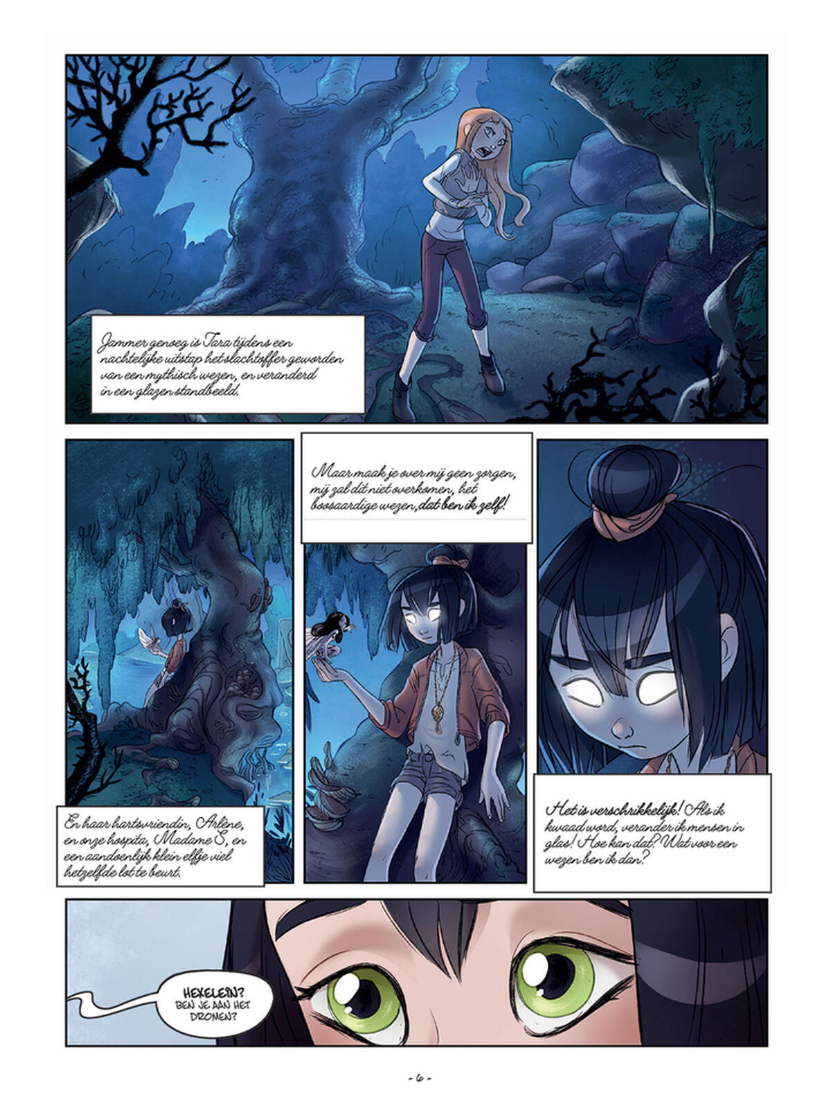 Een verfrissende jeugdreeks over magie en vriendschap, vol spanning en avontuur • Scenario van Sylvia Douyé, met betoverende tekeningen van Paola Antista Korte inhoud 'Hexeleintje is in gevaar! Enkel zij kan een fabeldier zien en dat is een voorteken dat ze binnenkort zal sterven… Wanneer Hexeleintje in een diepe coma belandt, klampt ze zich zo goed mogelijk vast aan haar leven, maar wat zij niet weet is dat er zojuist een geheim over haar is onthuld. Is haar kracht verbonden met haar afkomst? En bovenal, zou Hexeleintje kwaadaardig kunnen zijn? Voordat ze een antwoord krijgt, moet professor Balzar eerst haar leven redden. En dat terwijl er op school grote onrust heerst! Vooral omdat er een nieuwe stagiair arriveert op Vorn, Mérode nog steeds een glazen beeld is en de geheimen van het eiland nog lang niet allemaal onthuld zijn...' Geschikt voor meisjes ( en ook jongens natuurlijk ) vanaf 9-10 jaar.