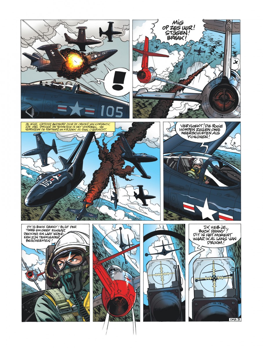 Buck en zijn squadron lopen in een valstrik die wordt gespannen door de bekende Russische kolonel Korsakov. Maar de Panthers van de marineluchtmacht worden technisch volledig overklast door de Migs van de Sovjets en er dreigt dan ook een bloedbad. Anderzijds is de inzet groot, want de macht over het luchtruim zal bepalend zijn in een oorlog die de VN absoluut moet winnen. Op de Boxer, het vliegdekschip waar Buck en zijn team zijn gestationeerd, laat Korsakov een persoonlijk bericht voor Buck Danny afleveren. De Russische kolonel, die wordt ingeschakeld om de plannen uit te voeren van Lavrenti Berian, het hoofd van de Russische geheime dienst, wil Buck Danny uitdagen voor een duel in de lucht. Wanneer even later Sonny wordt ontvoerd, gaan de poppen pas echt aan het dansen. Buck Danny revisited: terug naar de roots van dé klassieker van de vliegtuigstrips.