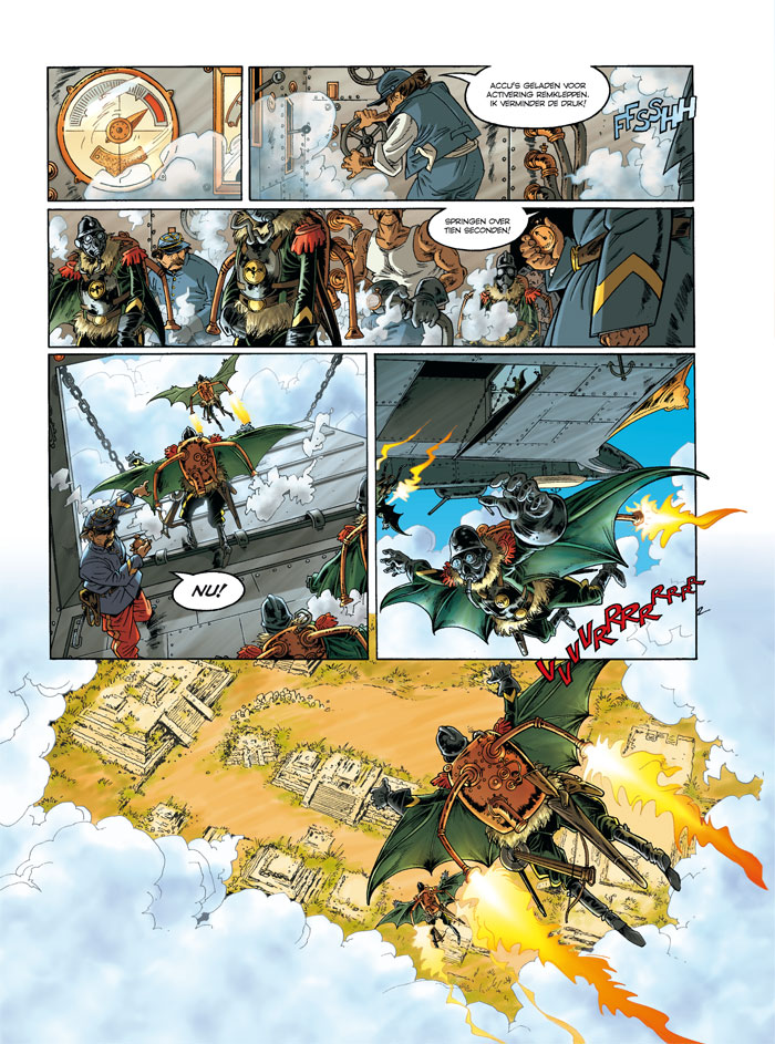 Gavroche is in het bezit van een onbekend fragment van de geschriften van Bernal Diaz del Castillo, de kroniekschrijver van de conquistadores, de Spaanse veroveraars van Mexico. Hij reist naar Monte Alban, waar ooit de Zapotheken leefden. Daar ontmoeten ze twee archeologen, die de geheimen van het document kunnen onthullen. Maar dan moeten ze eerst ontsnappen aan het Mexicaanse leger dat een ontzagwekkend wapen inzet om ze te achtervolgen. Het is de Santa Anna, een luchtschip dat is omgebouwd tot vliegend fort ...