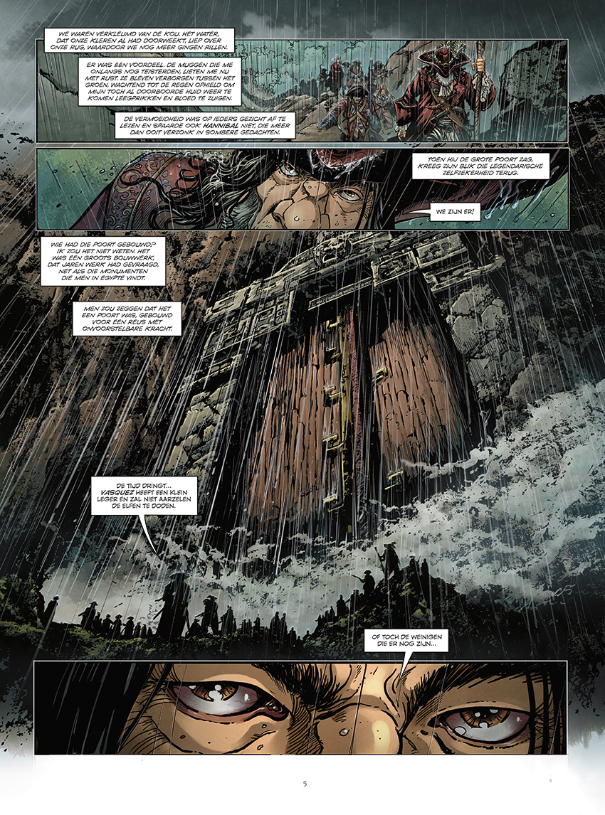 Met gratis Kunstdruk voor de snelle beslissers Achternagezeten door de Spaanse troepen staan Hannibal, zijn intrigerende dochter en heel zijn bemanning voor de poorten van de gouden stad. Maar elke schat heeft zijn bewaker ... Hannibal en zijn mannen dringen het heiligdom binnen, maar laten zich al gauw inhalen door de Spaanse troepen onder leiding van de geduchte kapitein Vasquez. Vasquez denkt dat Hannibal er enkel is om zijn dorst naar rijkdommen te lessen, maar beseft niet dat deze maar één doel heeft: het overleven van de elfen garanderen. In het midden van een stad, verborgen in het hartje van de Venezolaanse jungle bereidt het ultieme gevecht van de kapitein met de houten poot zich voor. En niemand zal er ongedeerd uit komen! Is dit het einde van Drakenbloed?