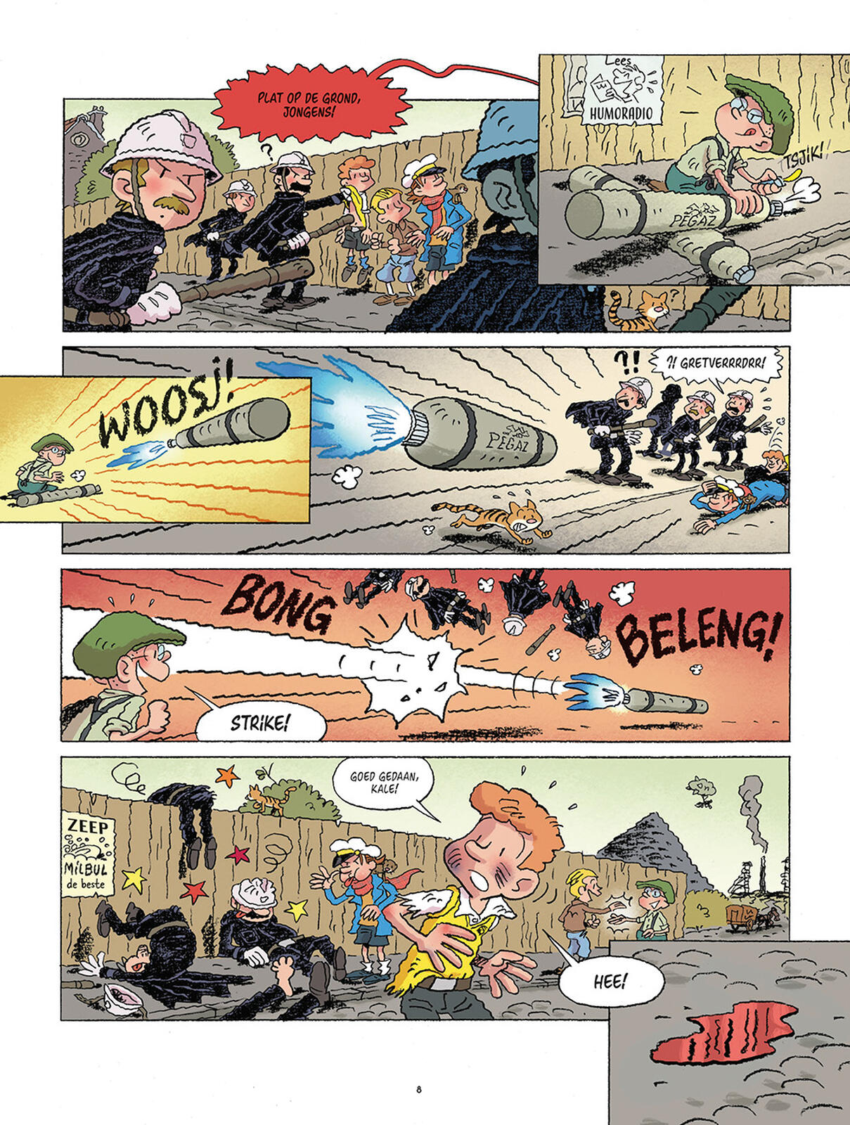 Marcinelle, 1943. De jonge Flup en de Robbedoesvrienden worden steeds roekelozer in hun strijd tegen de bezetter... Wanneer Robbedoezin verdwijnt, nadat ze is neergestoken, slaat de twijfel toe bij onze Robbedoesvrienden. Kunnen ze uit de klauwen van de nazi's blijven? En wat is er hun vriendin overkomen? Bovendien waart er in Marcinelle een mysterieus Palombisch beest rond dat door de nazi's uit zijn biotoop is ontvoerd... vriend, of vijand?